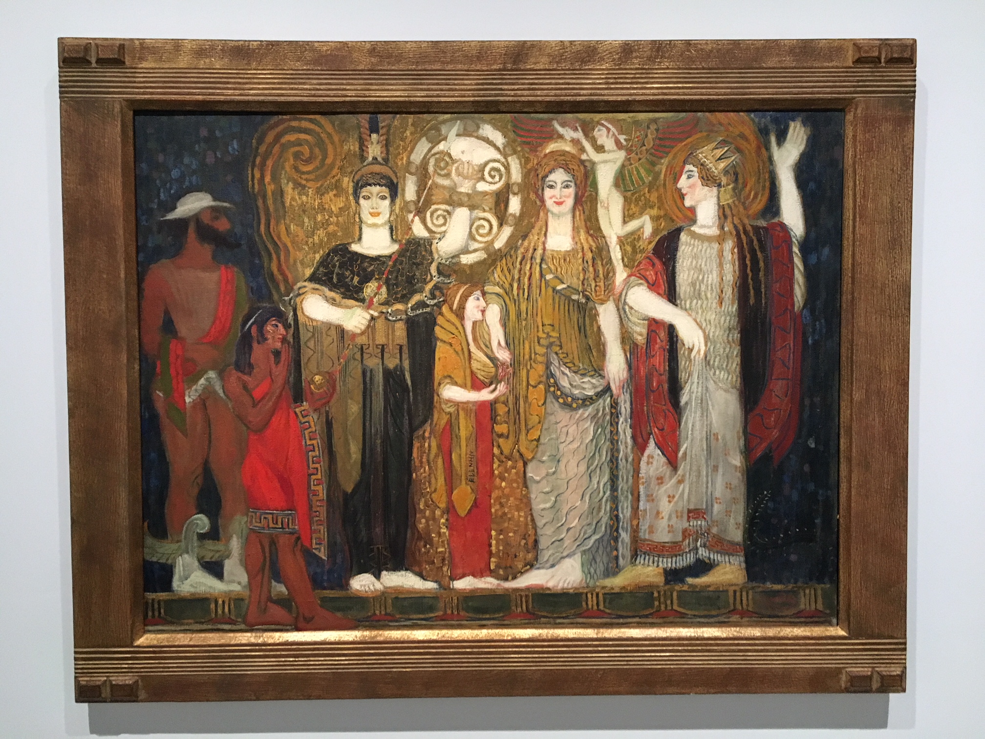 And here we start to see the artist’s mature style emerge. No longer content with representation, Kupka began to use colours and forms in less and less figurative ways. While this work only has touches of the abstract, geometric shapes start to emerge in the background which echo his later works.