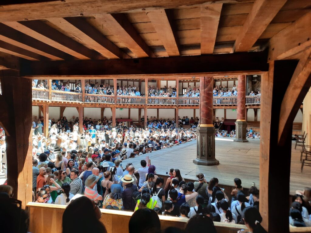 That, dear readers, is the story of how I ended up at an outdoor(ish) theatre on one of the hottest afternoons of the year.   Luckily my Groundling days are far behind me (the Salterton Arts Review likes comfort and abhors long periods of standing), so we not only had seats, but coveted seats where we could rest our backs.  My tip for Shakespeare’s Globe is to sit in the back row of any section: the views are fine and your back will thank you.