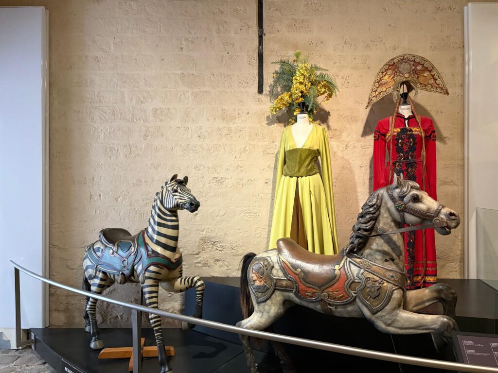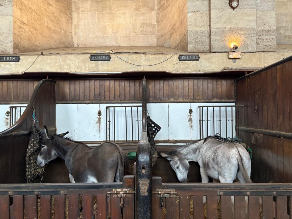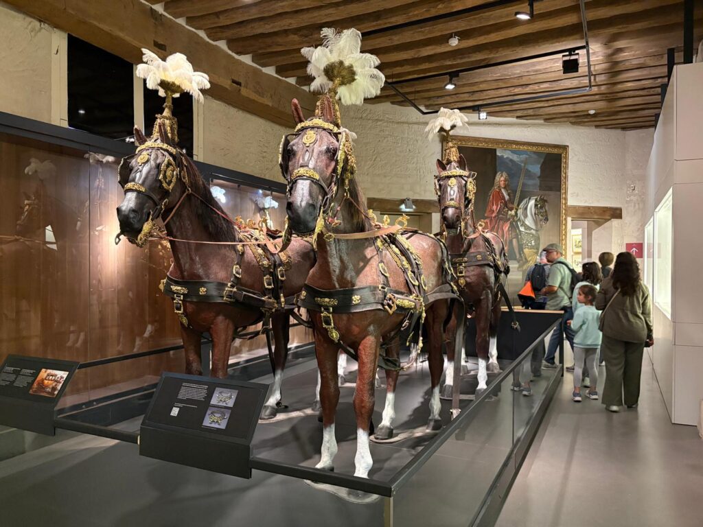 But grand they certainly are. The first time we visited, we mistook them for the château itself as we approached. There’s a fair bit to see inside. You enter through the stables themselves, so can visit with horses, donkeys, ponies and mules. Then you move on to the start of the museum. This stretches in a semi-circle around the edge of a small outdoor horse arena. It explores the shared history between humans and horses throughout history. And the other place to visit is the impressive indoor arena, where there are shows (additional charge) and equestrian demonstrations. Aim to be there around 2.30pm to catch the afternoon demonstration.