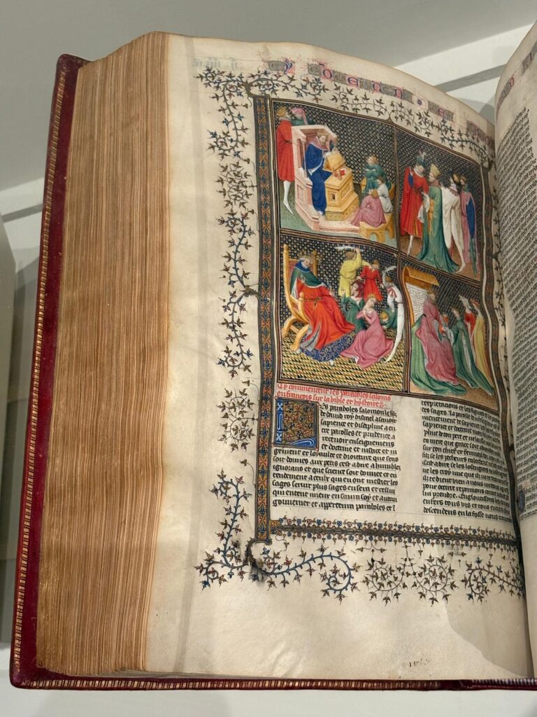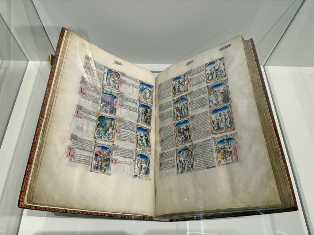 Next is a special moment. Remember how Jean de Berry commissioned six religious manuscripts himself? The curators have assembled them all. Maybe it’s because I’m a historian/museologist and an art lover, but I found it astounding to see them side by side, each increasing in scale and luxurious detail.