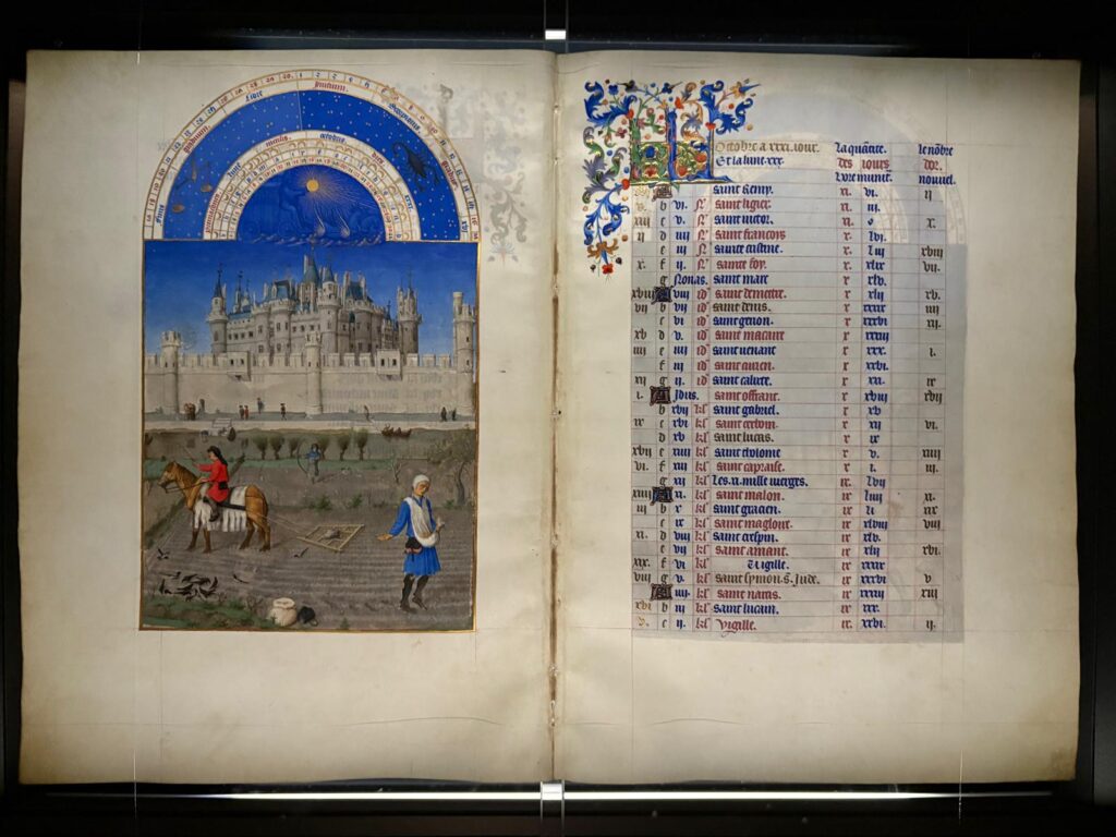 Even if you’re not familiar with the name Les Très Riches Heures du Duc de Berry, you might have seen an image of it. It’s a famous medieval manuscript, which the exhibition describes as the ‘Mona Lisa’ of the genre. But let’s break down what it’s all about.