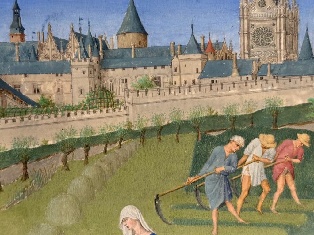 Well that comes down to who Jean de Berry commissioned to do the work. In this case, the Limbourg brothers, Paul, Johan and Herman. We know it was them because of a note in one of the inventories. The Limbourg brothers worked on the manuscript between 1412 and 1416. They’d already illustrated Les Belles Heures de Jean de Berry, now in the Metropolitan Museum of Art collection. Each manuscript Jean commissioned seems to have pushed the boat out further, however. Over a total of 206 leaves, Les Très Riches Heures du duc de Berry contains 66 large miniatures, and 65 small ones, many more than would usually be seen in a manuscript of this size.