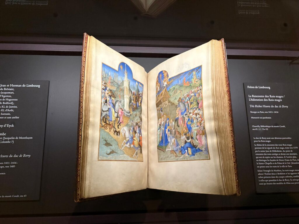 This is a very well-paced exhibition. The space displaying the manuscript itself is relatively small, but by building up to it, you feel like you get your money’s worth. You also feel like you understand the subject well by the time you get to Les Très Riches Heures du Duc de Berry. Its production, historic journey, artists, how it arrived at Chantilly: it’s all here. A nice little section at the end zooms into details in a video presentation, before you learn all the ways the manuscript has permeated our cultural life.