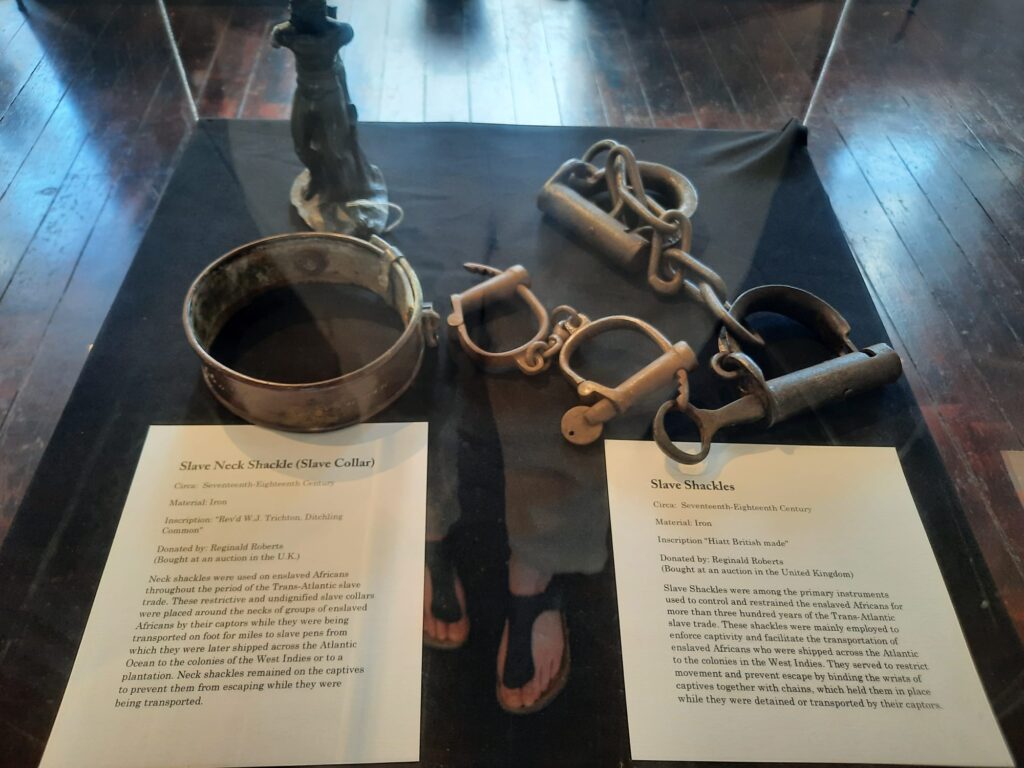 Additional texts explain ancillary events and issues, including Emancipation in 1834, and the subsequent betrayal of long ‘apprenticeships’ for the formerly enslaved. As an opening statement from the Grenada National Museum, it’s powerful. Here is a museum which is not tied to how things have always been, but is willing to give space over to new ways of understanding and honouring the past. The few objects which form part of the exhibition, while powerful, are almost unnecessary given the strong archival research-based approach. A tour by a museum staff member helped to orient us within the exhibition and ensure we had the basics of Grenadian history in order to grasp it.