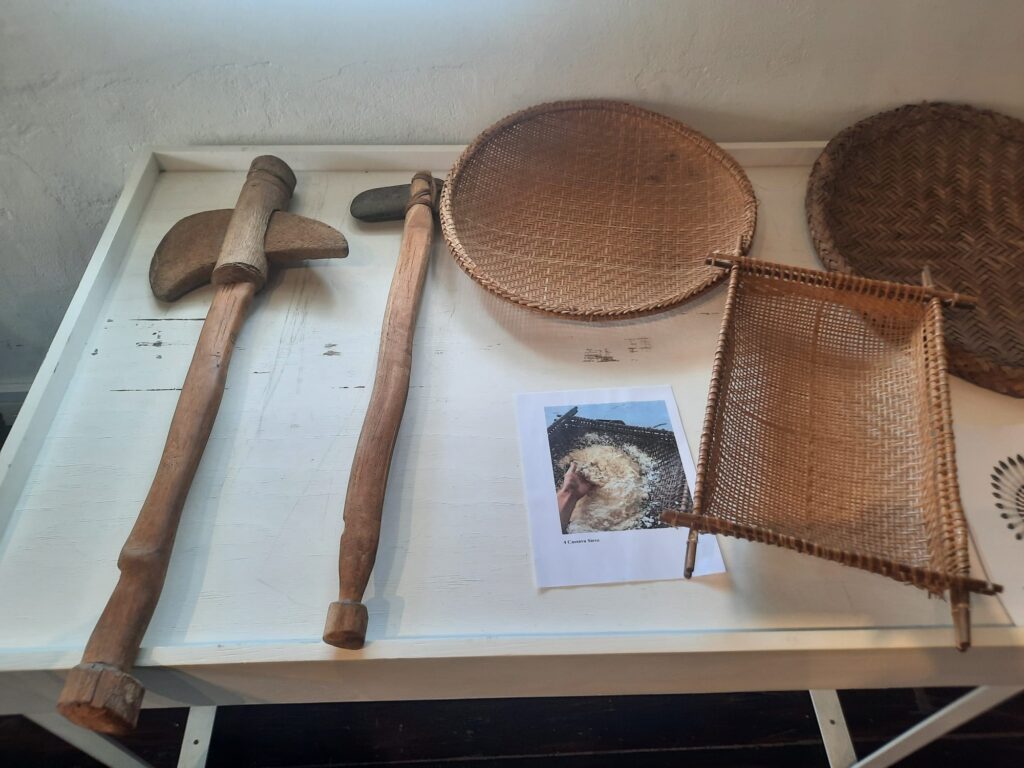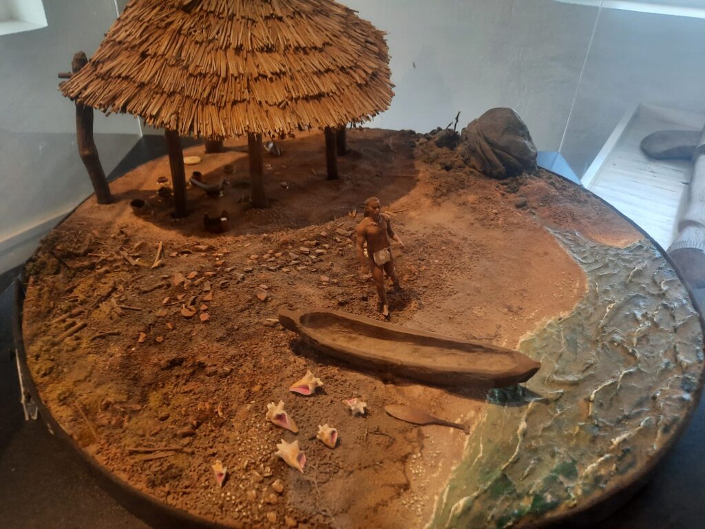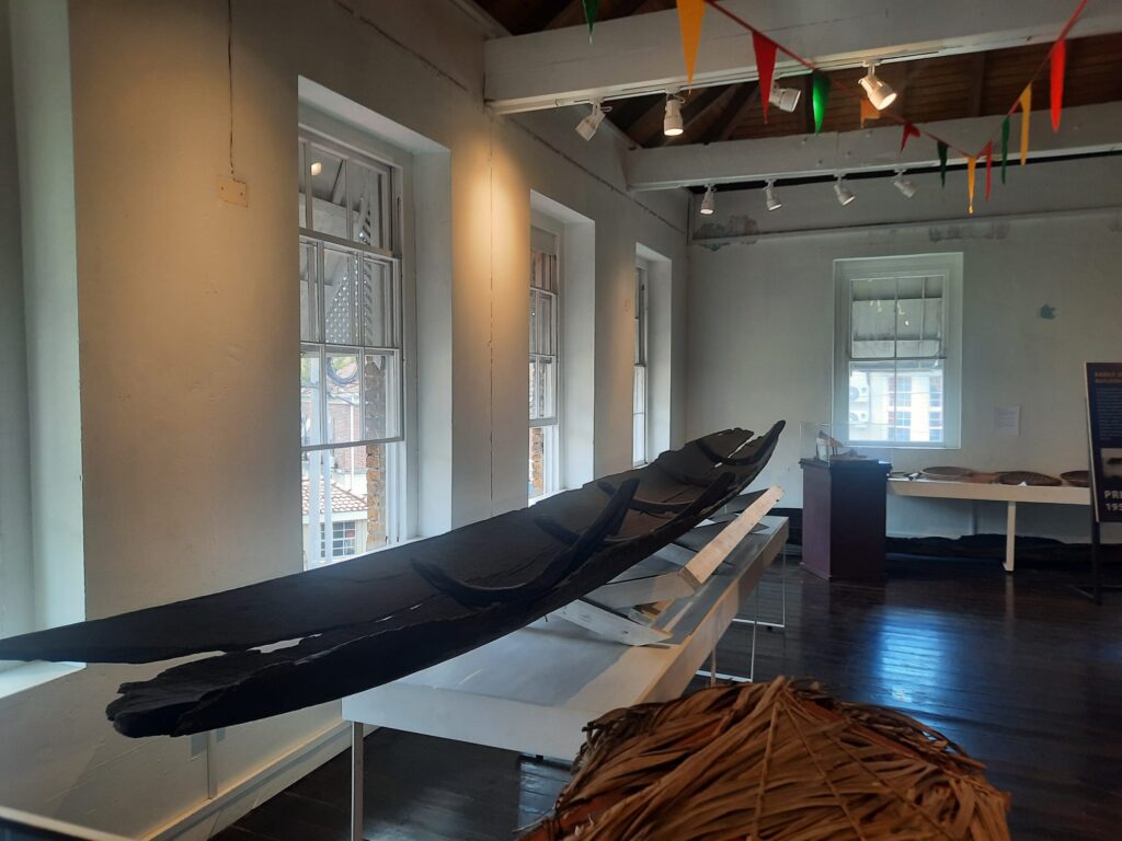 Onwards, then, to the next room. There were hints here that the museum may once have been more like my preconceived (and probably colonially-rooted) notions. A glass cabinet of artefacts greeted me in one corner. Inside were various pre-Columbian (or Amerindian in the local parlance) objects. Interesting to an archaeology lover such as myself, but admittedly a little monochromatic and with minimal labelling. Next to the cabinet a canoe stretched out its dark form. On the wall facing were replica tools, of the type I imagine form part of demonstrations to school groups.
