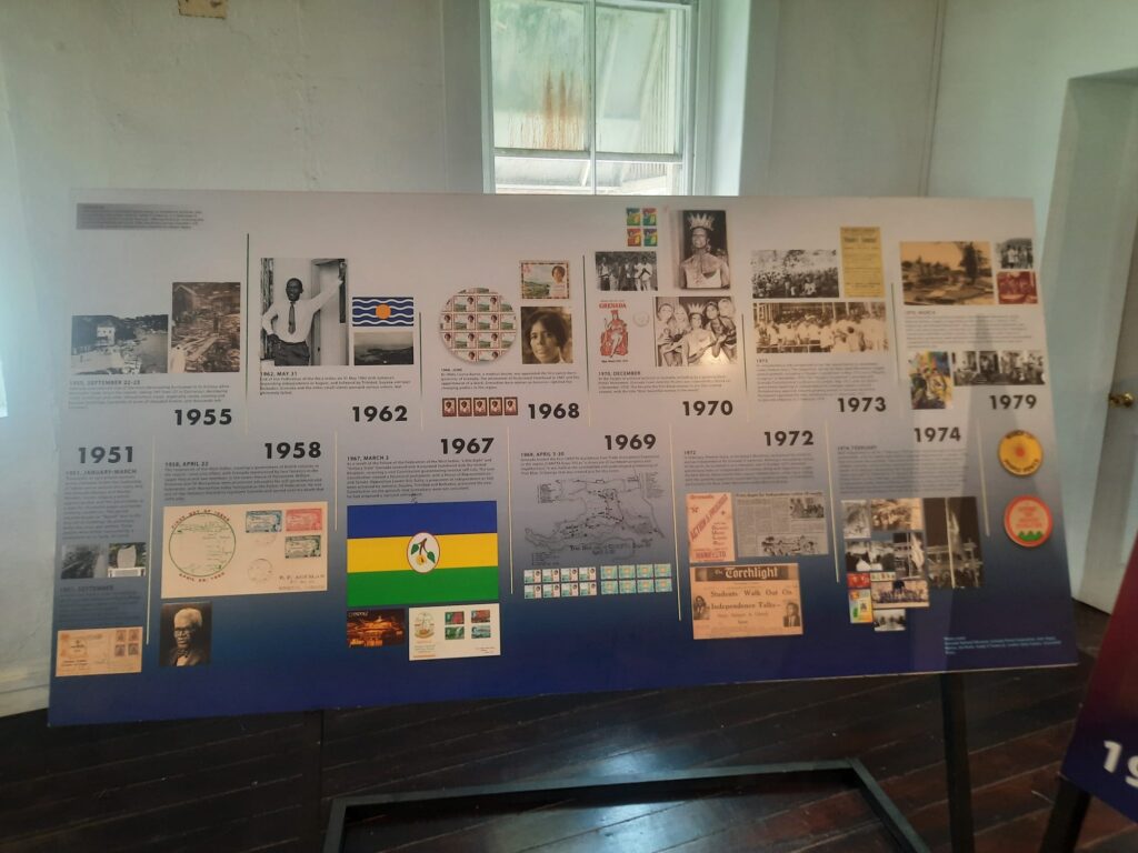 And so I’m going to summarise the rest of the museum experience in a few short paragraphs. I alluded to the next modern display, which the Urban Geographer made a beeline for. This was a historic timeline, celebrating 50 years of independence (in 2024). The main timeline is on panels around the outside wall. Supplementary topics (like Carriacou and Petite Martinique, or historic buildings) are on displays in the centre. The thing about removing objects from the museum and replacing them with text is that after a while it’s a lot of reading. I skipped over some bits, focused on those that interested me, and then went to sit down while the Urban Geographer finished.