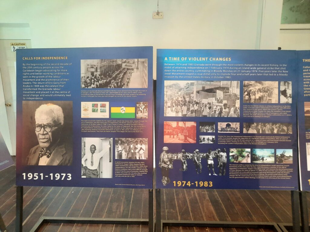 Today, the Grenada National Museum focuses on telling stories through research, and has done away with almost all of its traditional object displays. One little area survives, and we’ll look at that in a bit. But first let’s look at the research-focused displays.