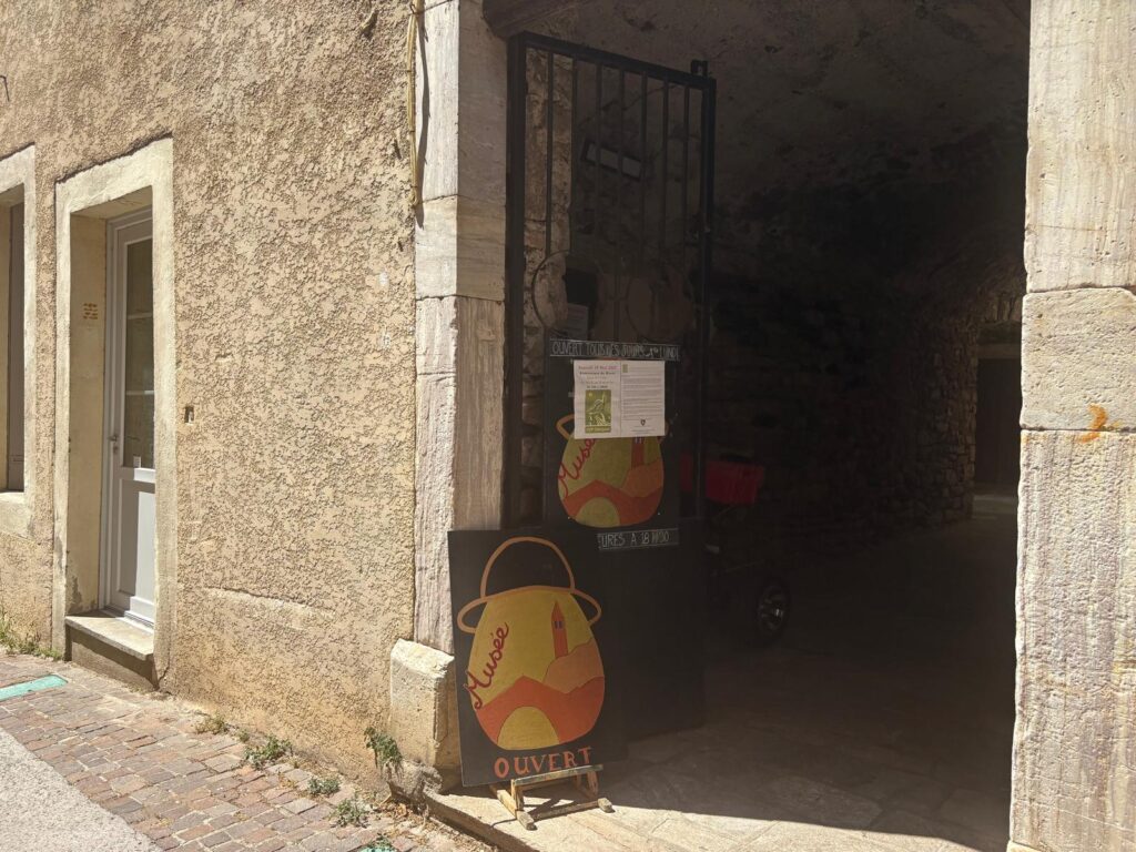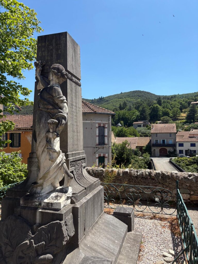 A first glimpse of Olargues from the bridge! Olargues often pops up in lists of France’s prettiest villages. It was long fortified, and still has the feel of a walled medieval town. But its history goes back further, with the Romans, Vandals and Visigoths having lived here. In the 11th century Olargues came under the authority of the Château of the Viscount of Minerve, and faced a period of war and unrest right through to the 18th century. Once again, poverty and hardship have the later upside of historic preservation!Fittingly, we bid farewell to the former railway at what was once Olargue’s station, just below the town. If you’re as silly as us and arrive when most businesses are closed for the afternoon, nearby hotel/restaurant Laissac is your best bet.The Salterton Arts Review always likes to find out about the history of a location, and ensure no stones are unturned when it comes to points of interest. To achieve that in Olargues, I downloaded an app: Circuits Minervois-Caroux. It’s available on Apple and Android, and nominally in English. One of their History Tours is all about Olargues. This photo is taken in the Plan du Verdier, the village’s main square. The app tells us its still used for community events, but when we visited it was masquerading as a car park. So here’s the village’s war memorial, and a view back to one of the entrances when this was a walled village: the Pourtalet.As described, a very medieval feel.Before there was a medieval village here there was a priory, right about in this spot, rue du Balad.More recently, I spot signs of masonic activity behind this attractive façade. This building is almost as old as the medieval iteration of Olargues, dating to the 12th century. Above its door, you can just about make out the village’s emblem, a (normally golden) round pot.
