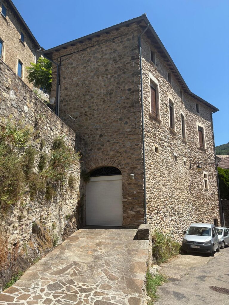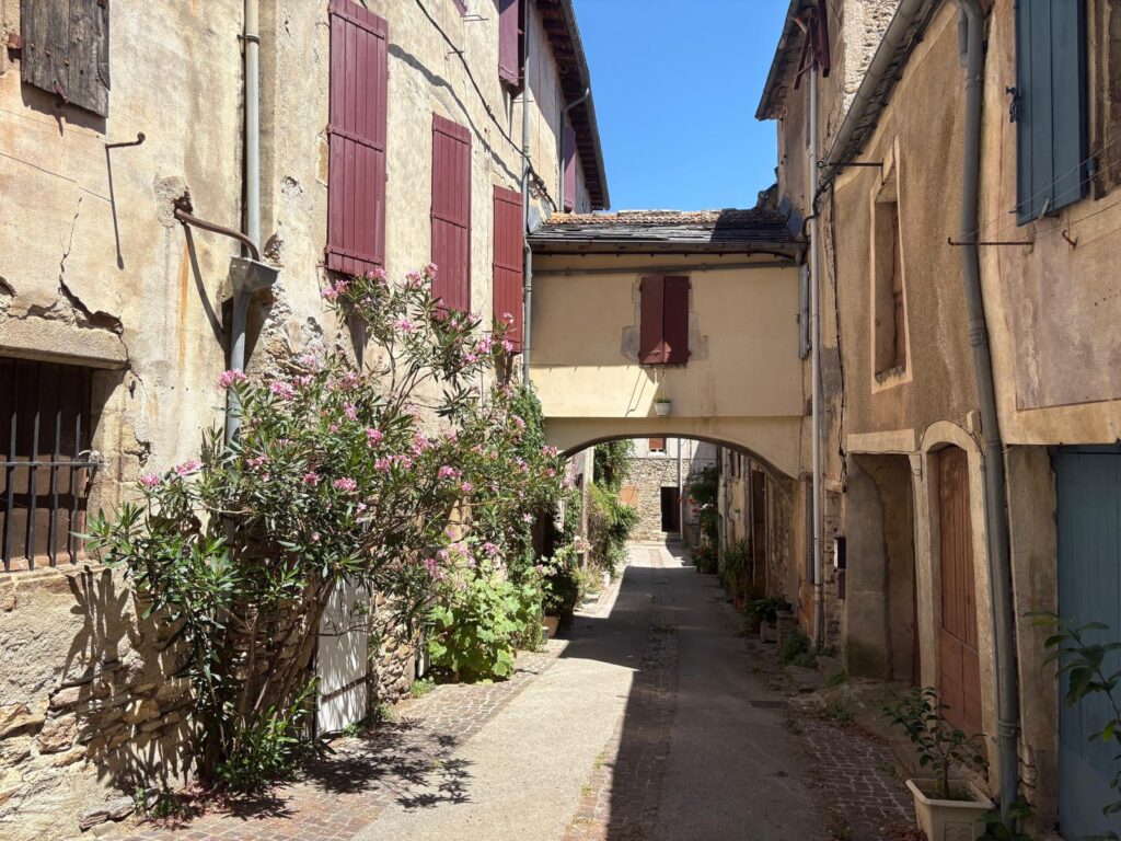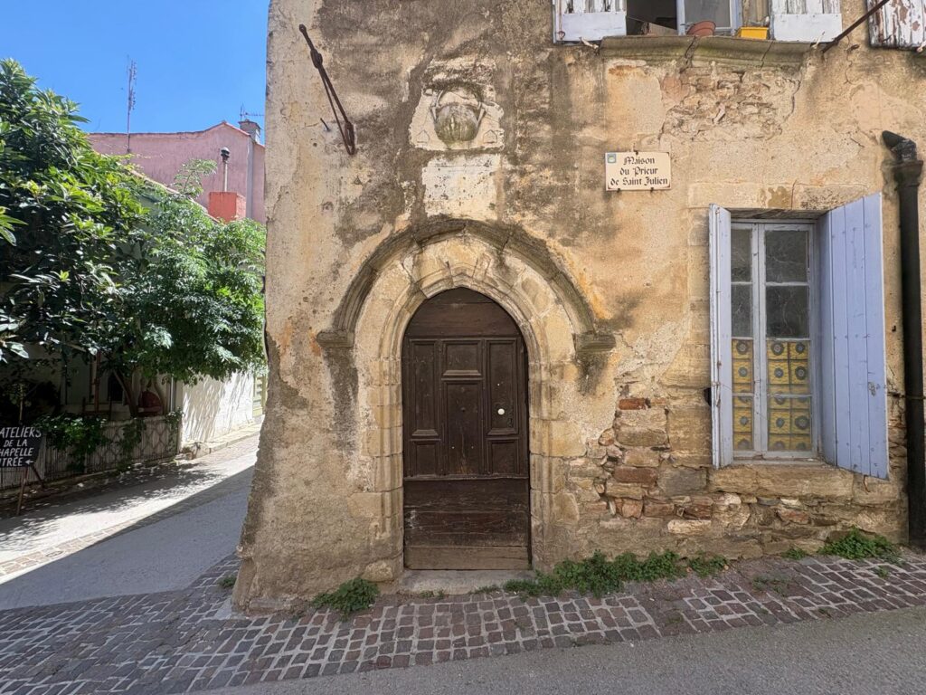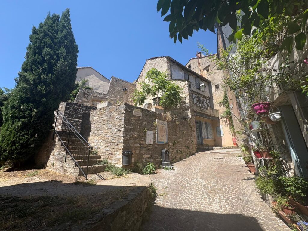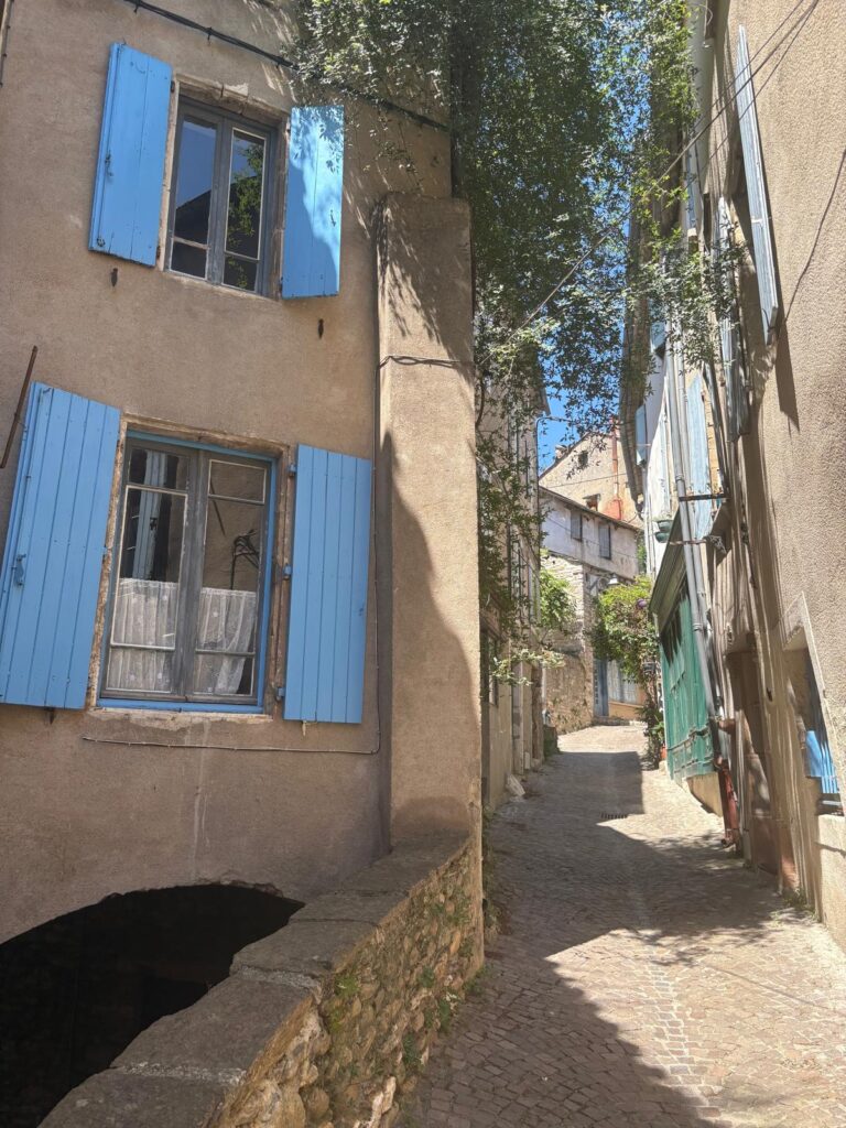 Another Romanesque construction, this handsome bridge dates to the 12th century, and was restored in 1758. Over the years it’s been called le Pont de la Pierre (the Stone Bridge), le Pont Vieux (the Old Bridge) and now le Pont du Diable (the Devil’s Bridge). The name could either refer to the fact that the bridge necessitated payment of a toll whereas fording the river had been free, or to a legend common to many bridges of the same name that the architect or townspeople had made a pact with the Devil in order to construct the bridge. You can see another image of it near the top of the post.Any water source that could be used to power a mill in the medieval period was valuable. And we can see down by the river that the buildings are more practical than residential. Grain and oil are among the products milled by the residents of Olargues. Living close to a river isn’t all free power, though. The village has survived numerous floods which destroyed flocks and fields. The flood of 1723 carried off trees and filled the entire valley, one of the Jaur’s tributaries reaching 30 feet in height. The app mentioned remaining visible marks from another major flood in 1875, but I didn’t spot them.We now follow what looks to be a former commercial street back up the hill.We have arrived at l’Espace des Vicomtes (Viscounts’ Square), where a stately home must once have stood. Even after the Barons of Olargues stopped residing here, they kept a foothold so they could check on their subjects, dispense justice, and deal with administrative matters.