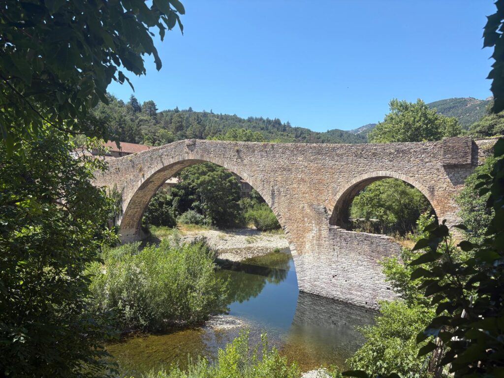Then, after finding a nice cool spot to drop off the Urban Geographer for another little rest (on a stairwell that formed part of the local headquarters of the Knights Hospitaller of the Order of St John)……I visited the local museum, le Musée d’Art et Traditions Populaires (the Museum of Popular Art and Traditions). I’ve done a short post on the museum here, but suffice it to say it’s reasonably charming and informative. I learned about local customs and industries, including extensive chestnut farming in the region.We’ve seen everything suggested by the app now, so it’s time to wander down past the cheerful town hall to get a drink at le restaurant Laissac (still the only place open). OK, an ice cream too, go on then.Back we go across the “Eiffel” Bridge.And along the old railway once more until we reach Mons. As I write this post almost a month after this expedition, the Urban Geographer has just about forgiven me for dragging him around in the heat. Hopefully by the time it’s posted, he’ll have forgotten and be ready for the next hare-brained scheme!
