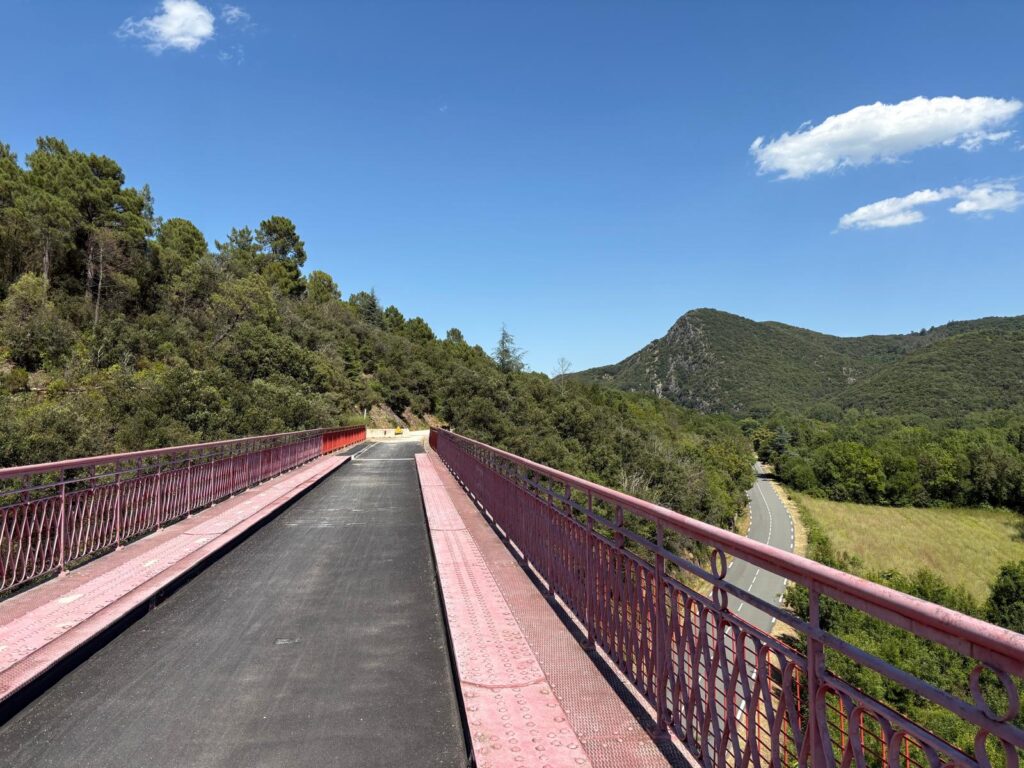 We began our walk in Mons, a little historic village in the Hérault. A little note on geography: the Hérault is a department situated in the Occitania region (l’Occitanie in French). It’s also within the Minervois, which is a wine-growing region. Anyway, this is where we were staying so it’s where we began. Mons sits just above the bigger village of Mons-la-Trivalle, which is bisected by the former railway we’re looking for.Some of the vineyards of the Minervois. It’s part of the Languedoc-Rousillon wine region, and produces red wines.A little bit further downhill, we find what we are looking for. This is the PassaPaïs. Now a walking and cycling path, from about 1880 to the 1970s a passenger railway passed along here. It covers about 80 KM in total, of which we are only seeing a couple. You can read more about it here (in French) or here (in English but a bit out of date).A bit more of the scenery for you.Just before arriving in Olargues, we cross this 1889 bridge. 1889, like the Eiffel Tower? Yes, and this is known locally as the ‘Eiffel Bridge’ or ‘Eiffel-Type Bridge’. It’s not though. The iron came from Eiffel workshops, but the man himself had subcontracted this project to another company (source here).