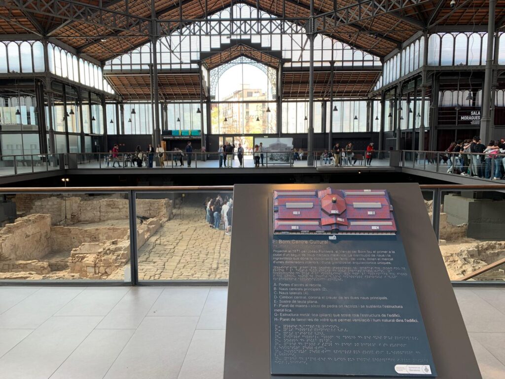 One of the real strengths of El Born Centre de Cultura i Memòria is how accessible it is. Much of the site is free to visit. You can walk in off the street, follow the raised walkways above the excavated ruins of La Ribera, and spend as long as you like reading the generous interpretation panels that surround the space. There’s also a dedicated exhibition about the building’s time as a food market, giving insight into its 19th- and 20th-century past.