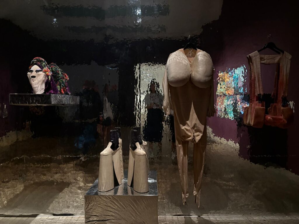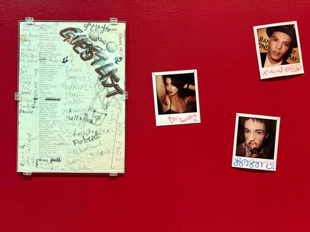 This context is a constant throughout the exhibition. A gallery of Polaroids, video documentation, guest lists and early garments shows Bowery as both product and provocateur of his time. He was in the thick of a generation dismantling conventions in real time, using nightlife as a means of aesthetic and personal transformation.