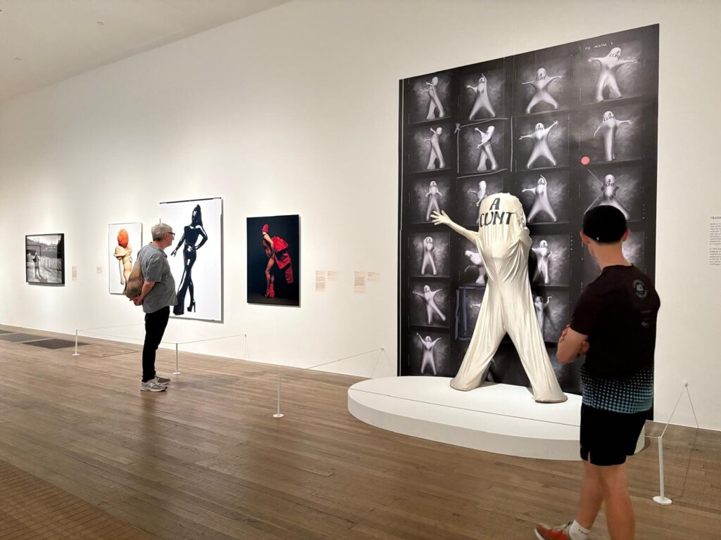 I enjoyed the exhibition a lot, despite the hesitations above. Because, after all, I’m not Bowery. I’m maybe the furthest thing from a club kid: much happier observing from the sidelines than volunteering to be birthed live on stage. I’d encountered Bowery before (in that Barbican exhibition among others), but I came away from this one with a much clearer sense of the personality behind the Looks. Especially his humour.