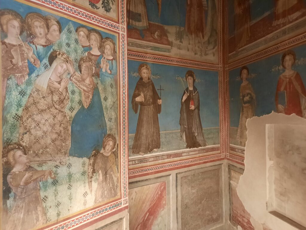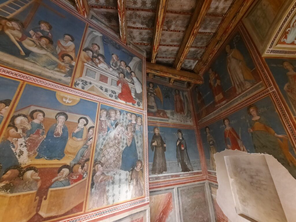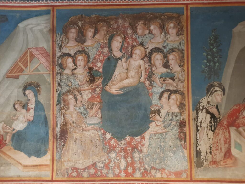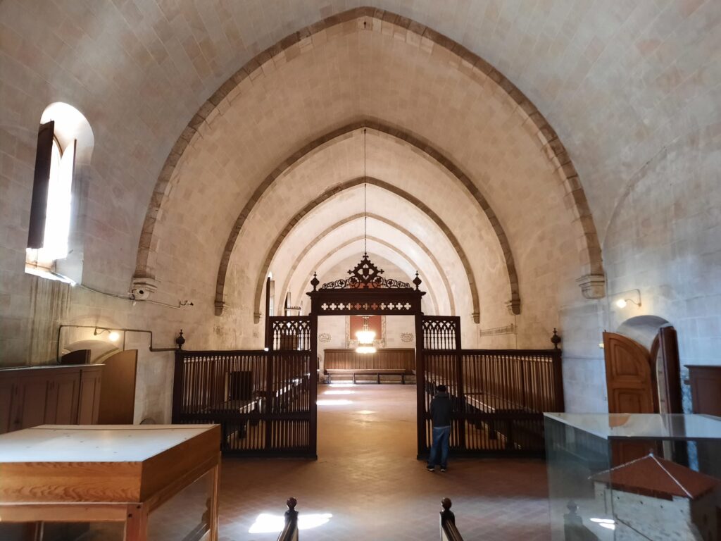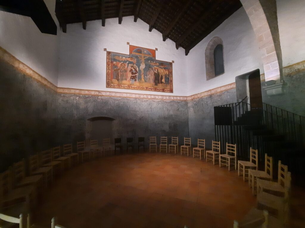 The monastery eventually transitioned into a mixed space – part religious community, part museum – and this hybrid identity remains today. The last nuns only left in 1983, and even now, a small community of Poor Clares lives nearby. What we see when we visit is not just a collection of rooms or artworks, but the legacy of centuries of quiet, cloistered life. Inside the museum spaces, you’ll find devotional art, liturgical objects, and fragments of everyday life. There’s less grandeur than you might find in central Barcelona’s churches, but more intimacy. The frescoes by Ferrer Bassa, painted in the 1340s in St Michael’s Chapel, are a highlight. Seemingly influenced by Giotto, they’re some of the most beautiful Gothic paintings in Catalonia.