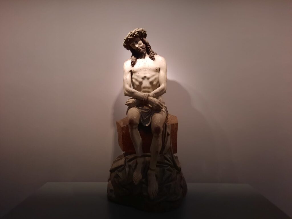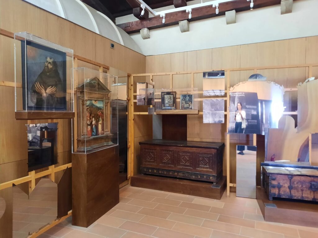 After exploring the ground level, a staircase leads up to the first-floor museum. The collection includes religious artworks, altarpieces, and sculptures, many drawn from the life of the monastery and its former inhabitants. After a gentle meander through this upper floor, the route takes you back down and up again to the first-floor spaces around the cloister.