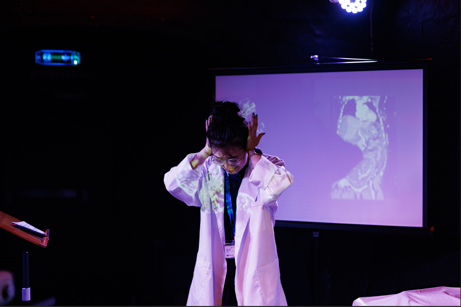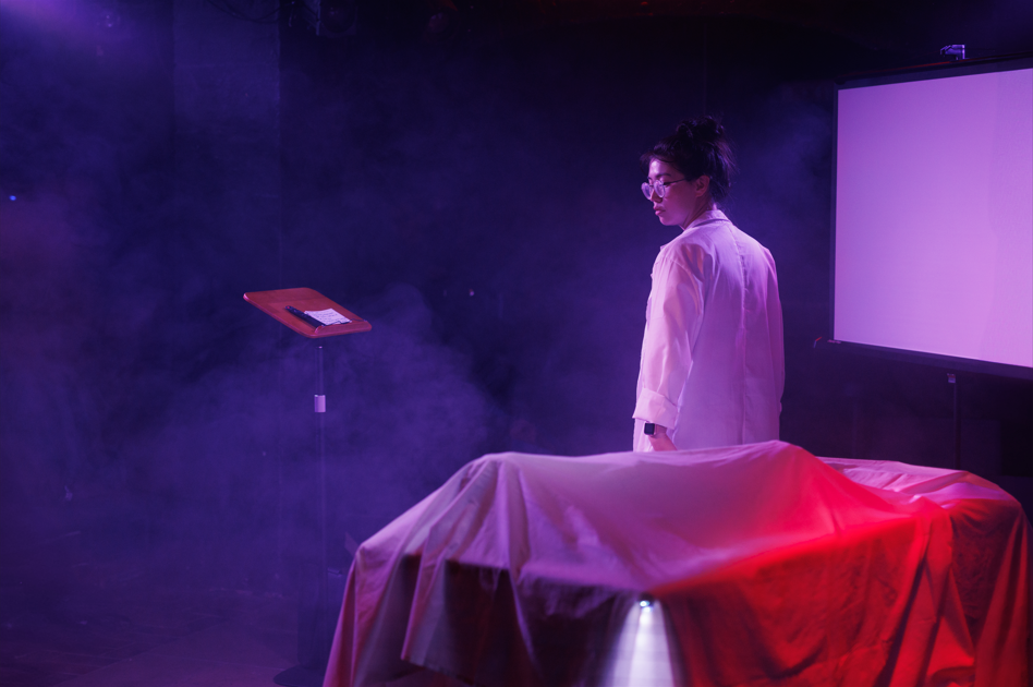 Itโs a conceit that works. Cordell is confident on stage, engaging enough to keep us with her, while the lecture format allows her to fold in exposition naturally. We learn the science, the history, and the theories, while the performance slowly tips from informative into unsettling. The set-up is smart, and it allows her to play both the academic and the horror fan, giving the audience some grounding before things get stranger.