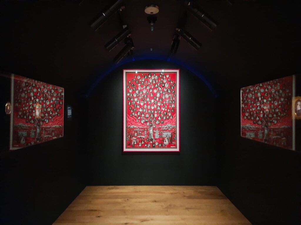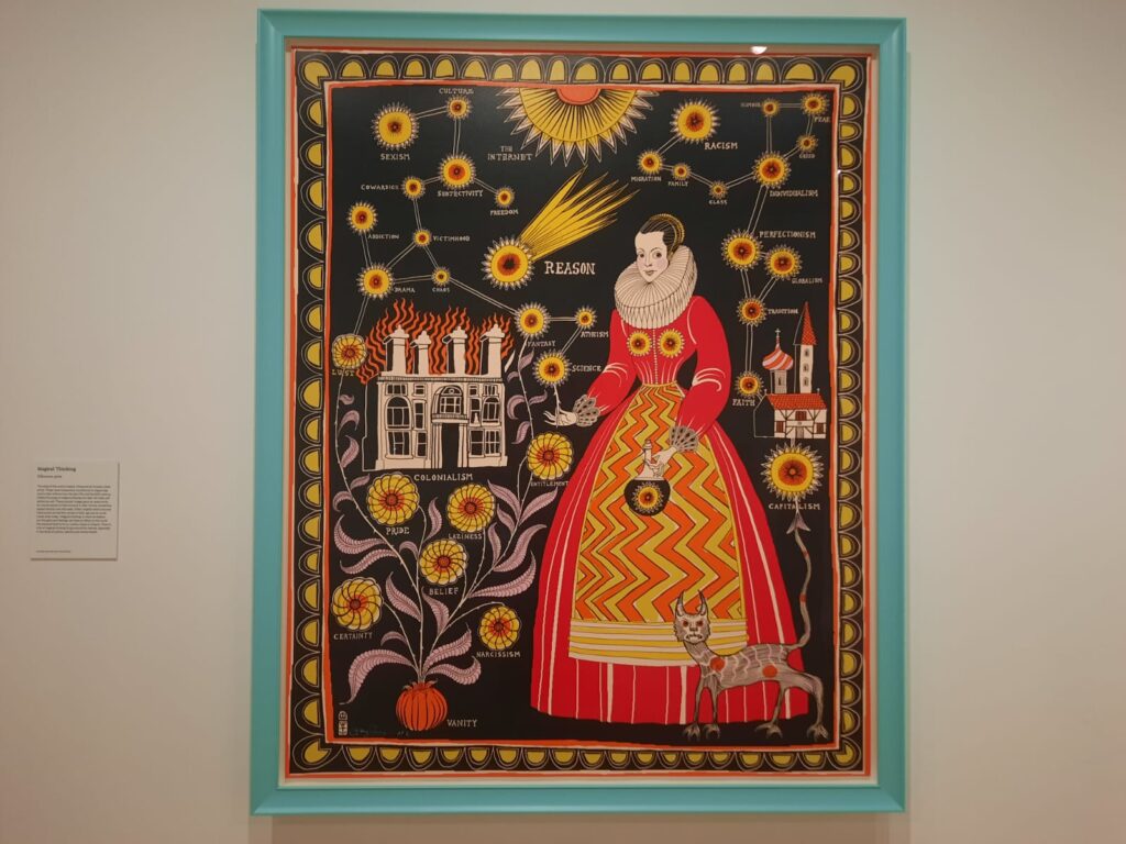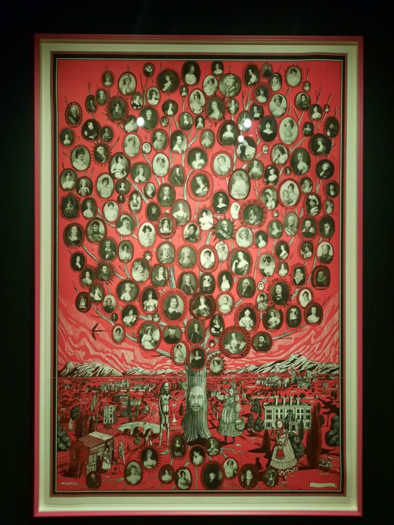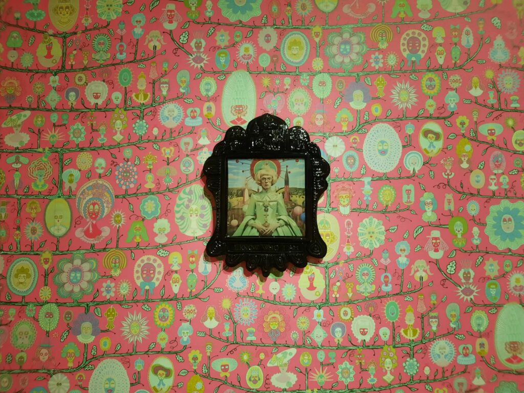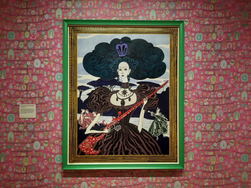 As well as making contact with the Wallace Collection in order to assert her claim as heir, Smith/Wallace created art that helped her to work through some of her challenging experiences. Some of the drawings in the exhibition are hers, although the astute may notice a passing resemblance to Perry’s own style. No matter. The lens of Smith/Wallace’s story is a remarkable way to break the Wallace Collection free from the confines of history, tradition, museum norms, and boring facts. Instead, this rather conservative institution tumbles through the looking glass into a new world of bright colours, and reinterpreted ‘facts’.