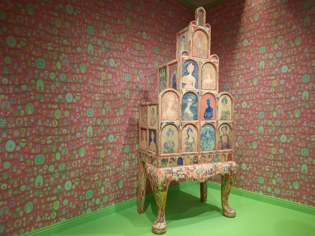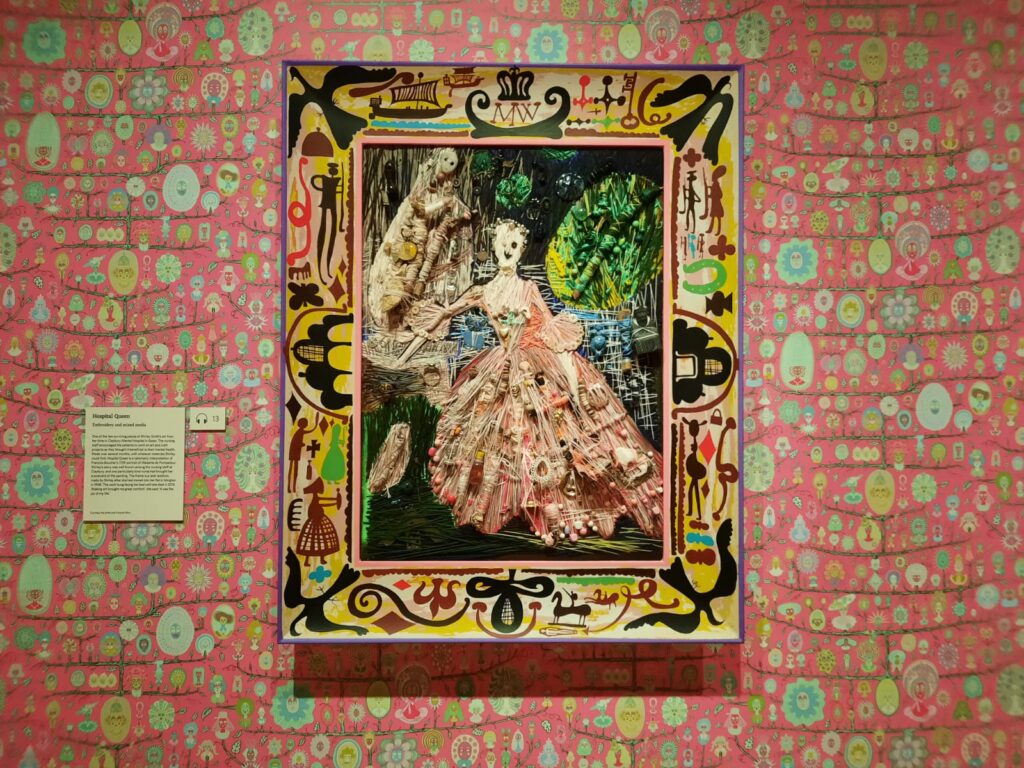 The cleverest curatorial device comes right at the start of Delusions of Grandeur. The first room introduces us to Shirley Smith/Millicent Wallace, but Perry doesn’t stop there. He sets her story alongside works by two real female “outsider artists”: Madge Gill and Aloïse Corbaz. It’s a brilliant bit of stage-setting. By opening with artists whose work was once dismissed or misunderstood, Perry sows the seed of doubt. Which of these stories are real, which are imagined, and does it actually matter?
