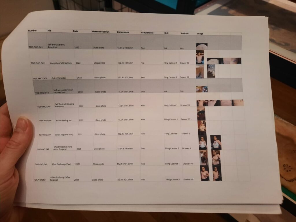 In terms of wider resonances: Bowler’s archive-style work reminds me of artists like Cassils who make work about bodily transition, visibility, and medical institutions, or artists such as Laurence Philomène whose work also invokes personal history, queerness, and medical treatment and transition. Top adds to a growing field of trans art in the UK that demands both private and public attention. Especially important during a time when gender care policy is under strain. If Top has a weakness, it’s that some visitors might miss the subtleties unless they are willing to open drawers, read small texts, linger. But it’s a rare show that gives that opportunity, and does so with clear integrity.