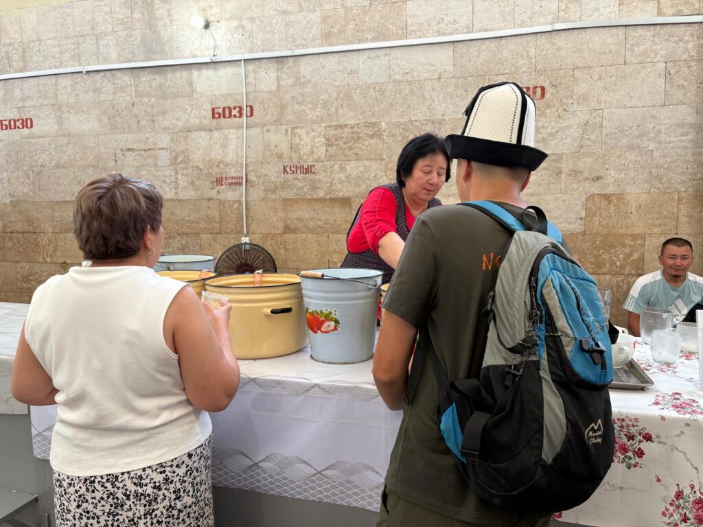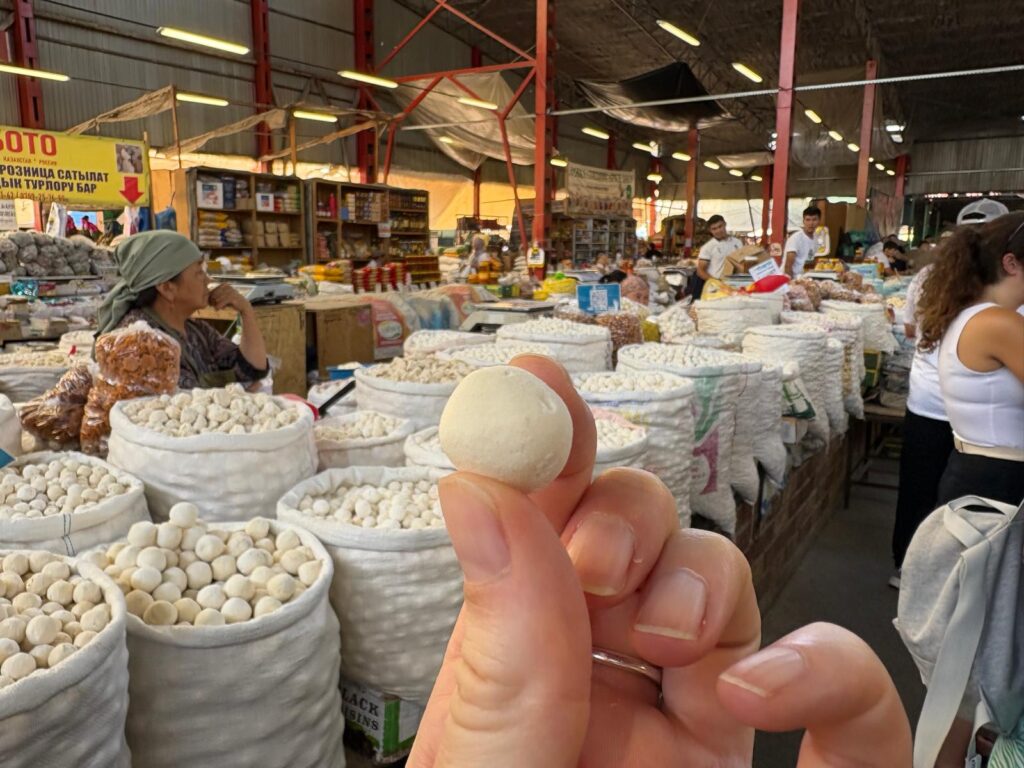 I think the best way to approach Osh Bazaar is just to pick a starting point, wander, and get lost. The area around the main entrance has electronics and other goods of medium interest. But it’s not long before you come across cavernous hangars filled with dried fruits and nuts, dried yoghurt balls, and other local treats. Vendors may let you sample before you buy. If you’re hiking, this is a great place to stock up on healthy snacks. Further on, there are separate spaces for meat, dairy, household goods, clothing, school supplies: basically anything you can think of! The dairy section is where you can try kumis (fermented horse milk). It is most definitely an acquired taste, so it’s not a bad idea to get a group together and share a mug rather than have one to yourself.