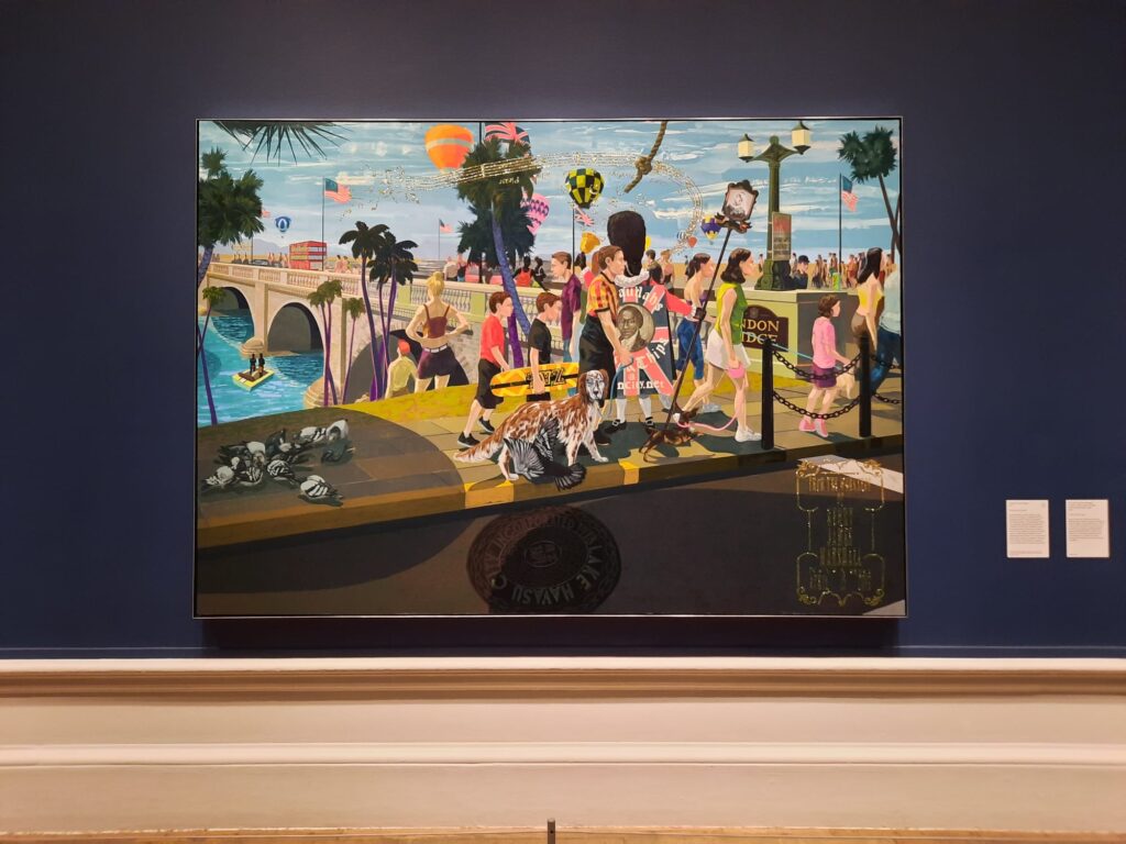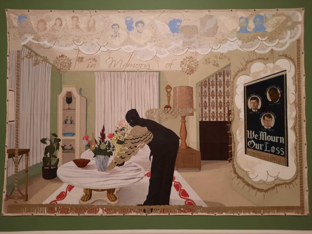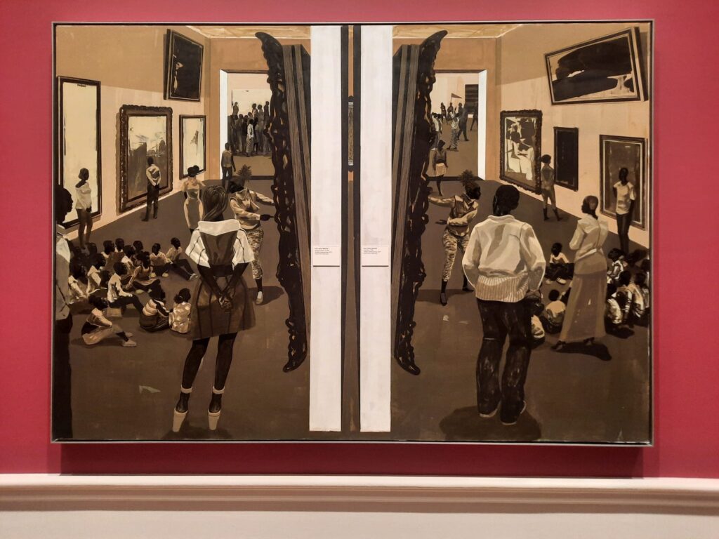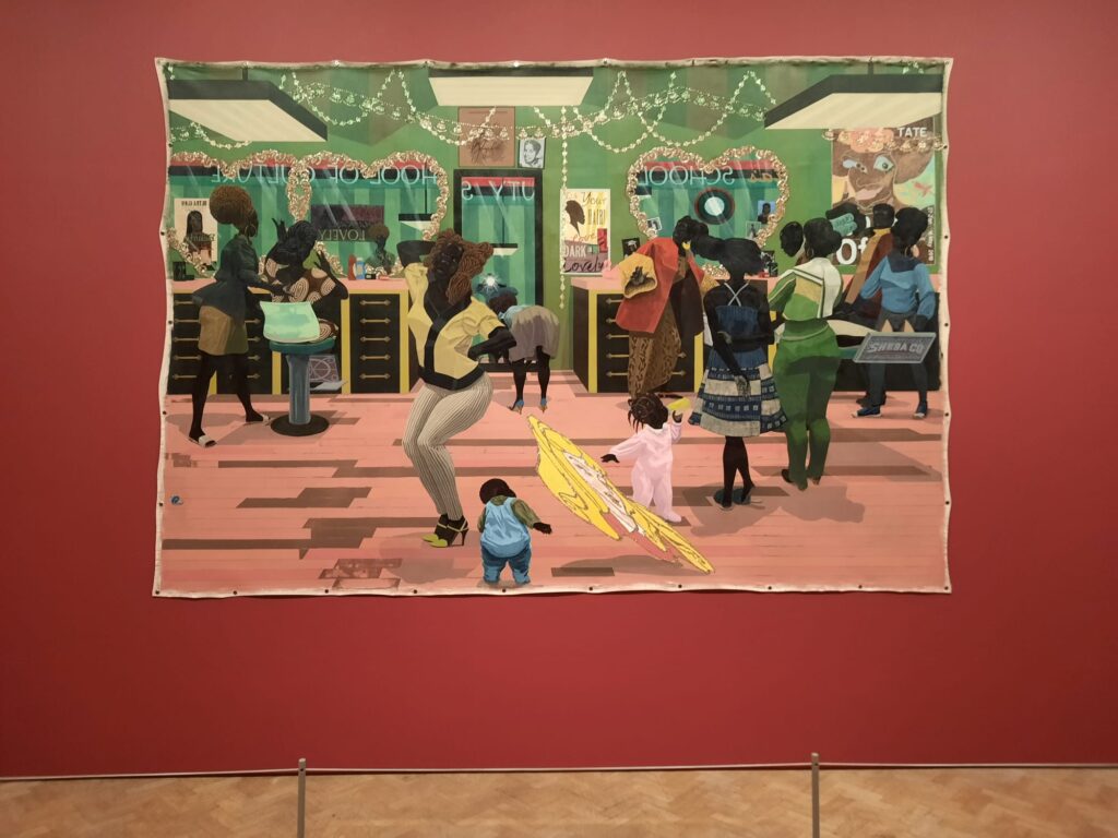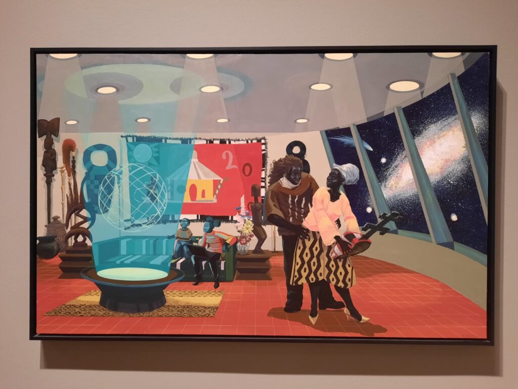 It was in the final room of the exhibition that I found my favourite work. The paintings here are a bit smaller than many of the earlier pieces, and I liked this more intimate scale. Keeping the Culture (2011 – first image above) shows an Afrofuturist scene of a family on their spaceship. Itโs beautiful, hopeful, and full of possibility. After moving through all the layers of social and artistic history that Marshall interrogates, this felt like a gentle reminder of why those themes are important: they’re like a manifesto of survival, imagination, and new futures.