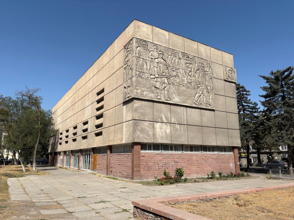I very much enjoyed my visit to the M. V. Frunze House Museum from the start. While a museum centred on Frunze’s childhood home goes back to December 1925 (quick work), this building dates to 1967. Like the Kyrgyz National Museum of Fine Arts, it’s a nice example of Soviet Brutalism. Lots of concrete in a monolithic form, utilitarian yet dramatic. The museum has concrete murals wrapped around all four sides, the work of Alexander Voronin and Alexei Kamensky.