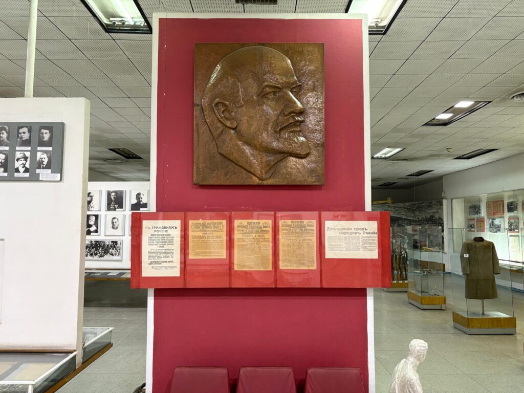 Walking through into the first museum space, a relief portrait of Lenin greeted me. An excellent start. I then proceeded to walk around the displays, which consist of a lot of documentary materials (often copies of the originals), a few objects, and the odd imaginative display, recounting Frunze’s life and deeds in great detail. While a lot of the materials are in Russian, most labels are in Kyrgyz, Russian and English. So you at least get an idea of what’s going on. Eventually, I got to the end of the top floor, and made my way downstairs. The next floor down was closed: it seems like maybe it’s a temporary exhibition space as I know the museum holds these from time to time.