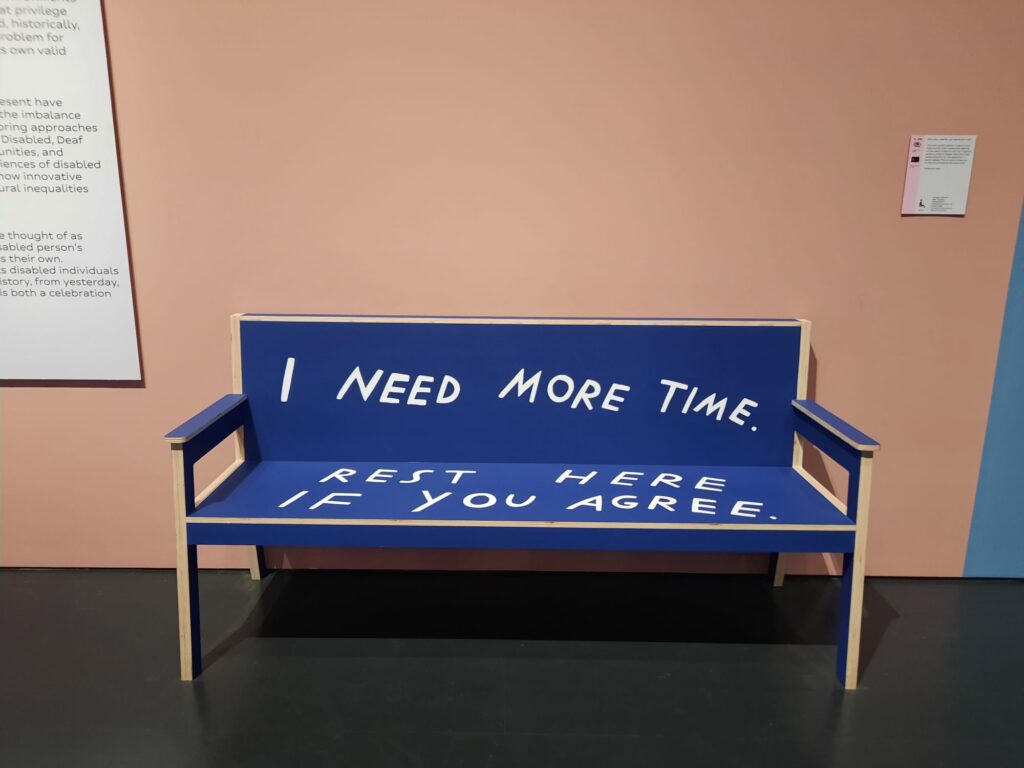 Despite its many successes, I encountered two main areas that merit reflection, especially from the perspective of disability and society. Firstly: there is a reasonably heavy reliance on text-panels, which in turn contain a lot of theoretical framing. The language is fairly dense and prescriptive in places, a finding shared by other visitors including some with a deep knowledge of disability studies. One review written by a disabled academic said the exhibition “lectures from inside a bunker … it tells you what to think”. That raises the question: is this an exhibition open and accessible to all, or does it demand prior (academic) knowledge? Were the curatorial team conceptualising the exhibition from within a particular echo chamber? Museums aiming for inclusive design must also consider interpretive inclusivity.