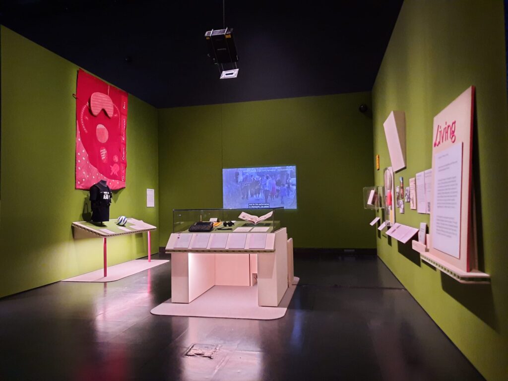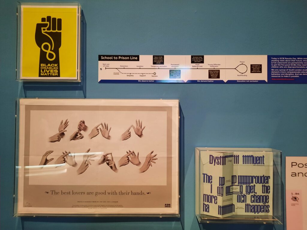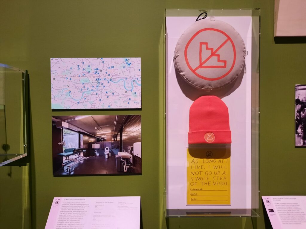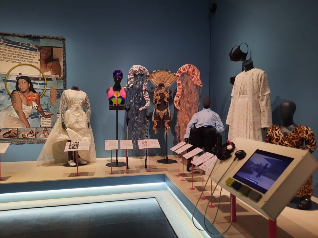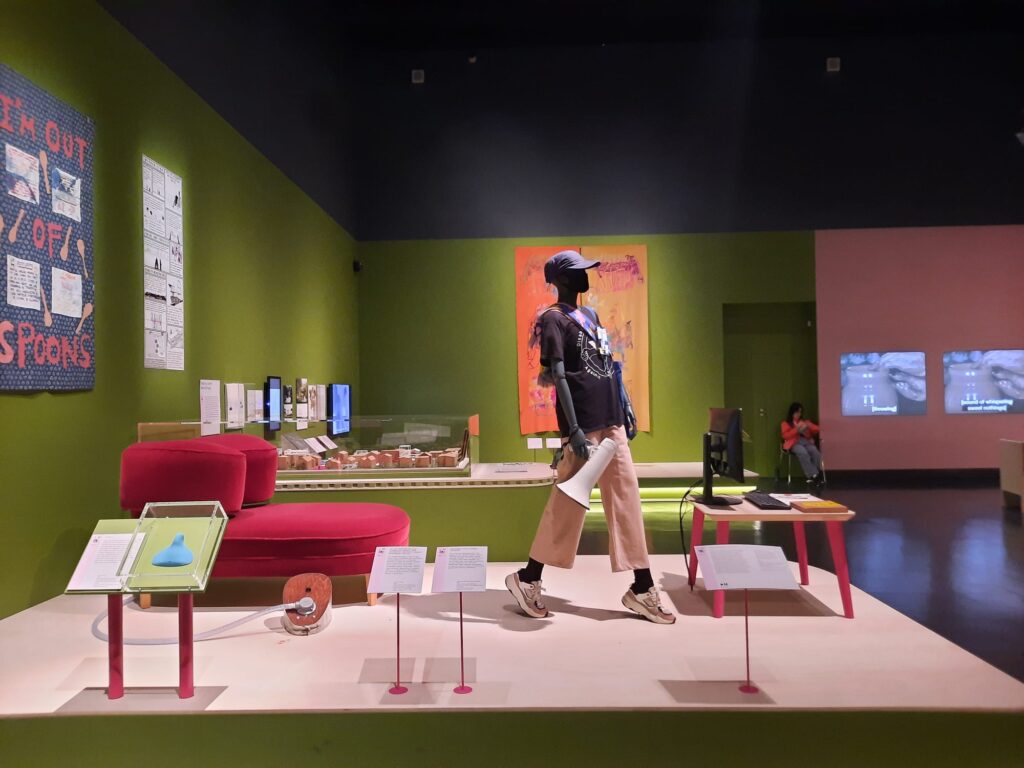 One of the most impressive features of the Design and Disability is its built-in accessibility. From tactile maps, BSL guides, and sensory surfaces, to resting zones, the design team has considered inclusive participation throughout. These features are fully integrated into the visitor flow rather than appearing as afterthoughts. Many reviewers, disabled and non-disabled, saw this as a step in the right direction (see for instance here). On the object side, the selection shows breadth and ambition: from activist zines to an Notting Hill Carnival costume by Maya Scarlette, informed by her experience of ectrodactyly.