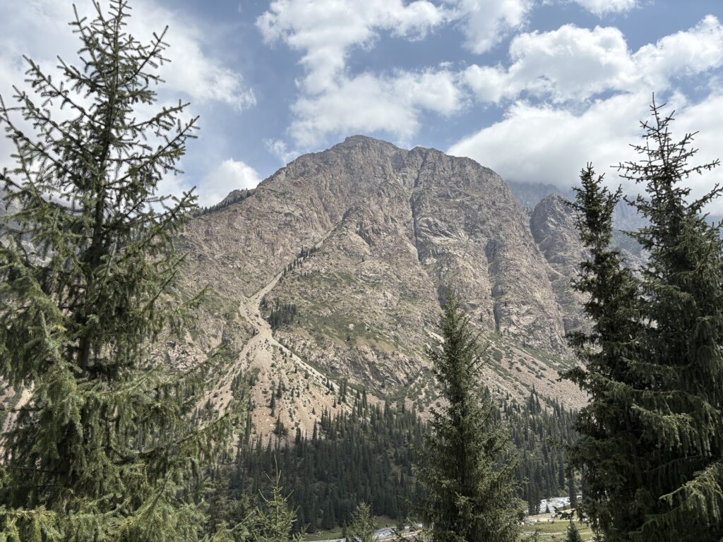 In my last post, I described a multi-day hike through the Jukku Valley and along the Arabel Syrt in Kyrgyzstan’s Tien Shan Mountains. I explained how the logistics of the trip were facilitated by the existence of a newish road back down from the plateau, built to service a gold mine. That road deposited us in the Barskoon Valley, near the southern shore of Issyk-Kul (Kyrgyzstan’s largest lake). Our destination to rest and recuperate after our adventures was the nearby village of Tamga.