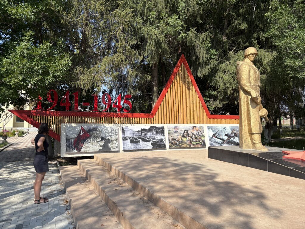Sentiment has shifted over time, too. And the monument to dear old Yuri is a good gauge. From a symbol of pride in the Soviet period, the monument was damaged and more or less destroyed post-1991. I read somewhere it was covered in concrete at one point. The restored appearance today suggests an unrealistically peaceful acceptance of the country’s Soviet period. But that acceptance does seem to have come, eventually. Likewise the town’s war memorial is very nicely restored, and very Soviet (the big red star gives it away). Most war memorials I saw in Kyrgyzstan were still very Soviet in nature. I guess the victims were fighting in the Great Patriotic War, though, so it’s not an easy bit of history to rewrite.