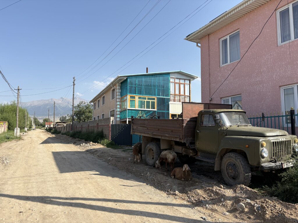 Tamga’s low-rise buildings and wide streets, between a lake and the mountains, actually reminded me quite a lot of my native New Zealand. The buildings have a different kind of charm, though. There’s very little in the way of reliable information about Tamga online, but I’m guessing the settlement dates back to the Russian Empire period. The older houses certainly have a Russian influence, with decorative wooden gables. There was probably a military element to the town from its inception, and during the Soviet period even more so. In fact, during the Soviet period, Tamga was within a restricted zone due to secret naval testing in Issyk-Kul lake, so not just anybody could live or travel here. There was also a military sanitorium, which still exists today but I don’t think is a military facility any more.
