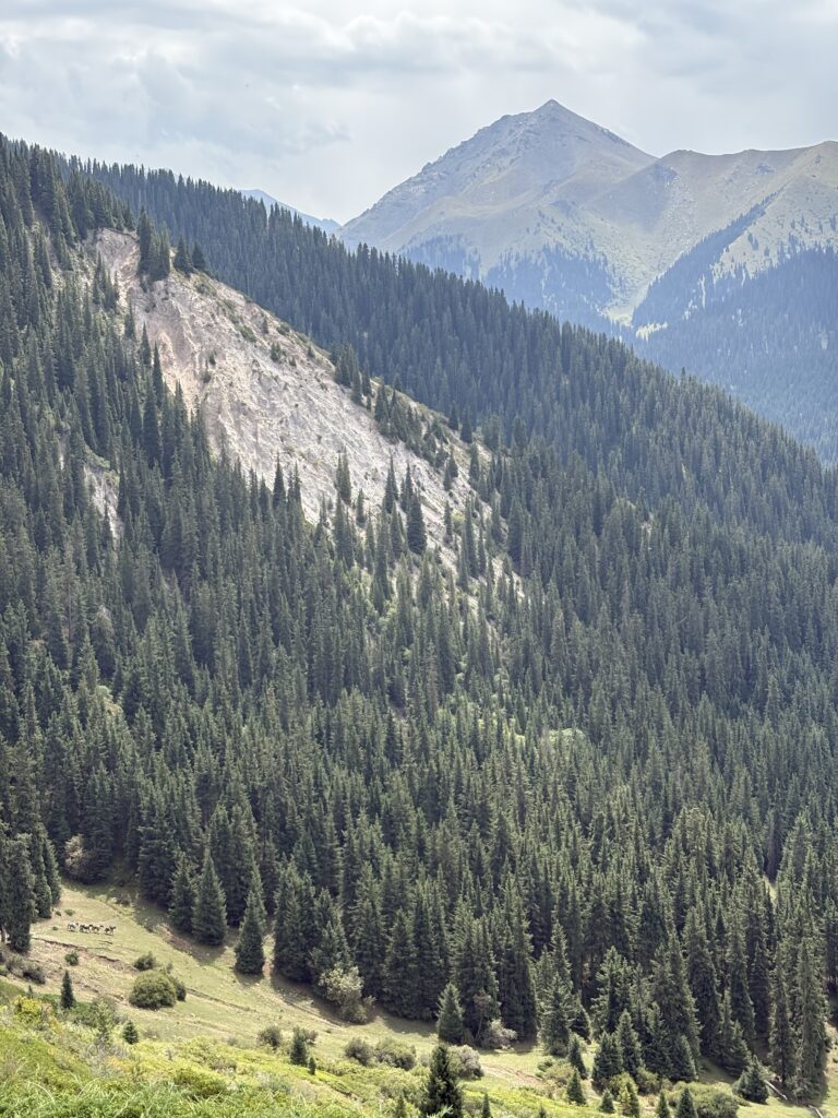 The flora of the Tien Shan mountains changes considerably with the altitude. The lower reaches are forested, with many examples of the elegant Tien Shan pine. As you get higher these cede to pastures, with edelweiss and other small flowers a common sight. Actually, between the marmots and the edelweiss, I was struck more by the similarities to European alpine landscapes than the differences.