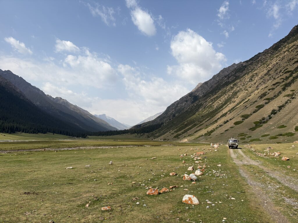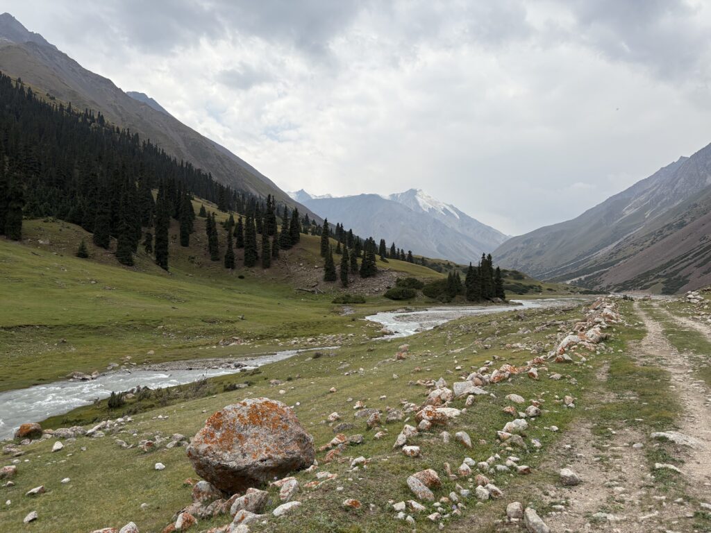 The end of our hiking trip was also an interesting lesson in contemporary Kyrgyzstan. The Arabel Syrt is accessible today thanks to infrastructure for a nearby goldmine. Having reached our van and packed our bags and selves back in, we had a wait for a gap between heavy vehicles driving up the winding road. Without that road, would this trip still be on offer? Perhaps, but I’m not sure. The Kumtor Mine has been a focus of protest and international relations in recent years. Locals staged a blockade in 2013, unhappy that more profits from this important mine were not trickling down to benefit them. In 2021, the Kyrgyz government nationalised the mine, seizing control from Canadian company Centerra Gold.