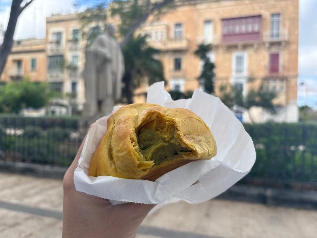 Malta’s food culture ranges from the very informal all the way up to Michelin-starred restaurants. At the informal end of the scale, I definitely recommend you try out a pastizzeria – a pastry shop. Malta does a range of traditional pastizzi with crispy, flaky pastry, or doughier qassatat. You can get various pastizzi fillings, but we particularly liked the classics: ricotta or pea puree.