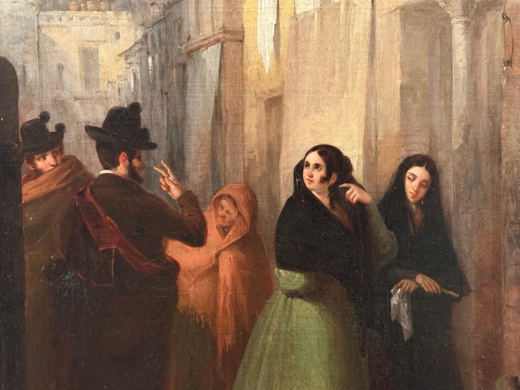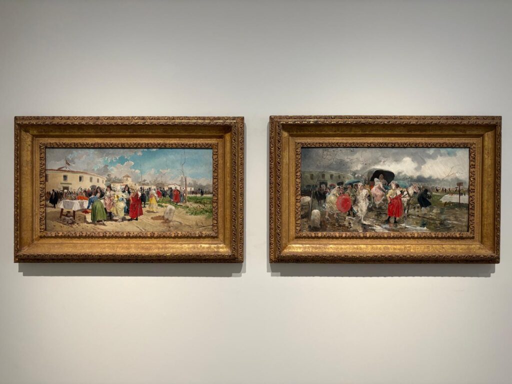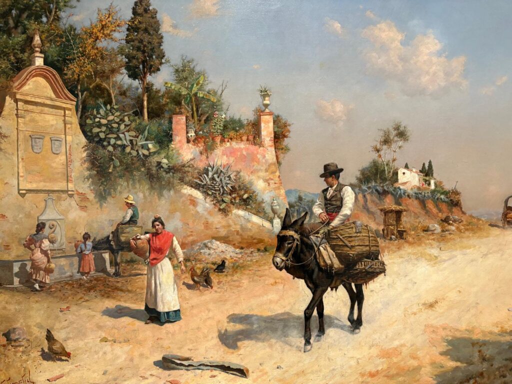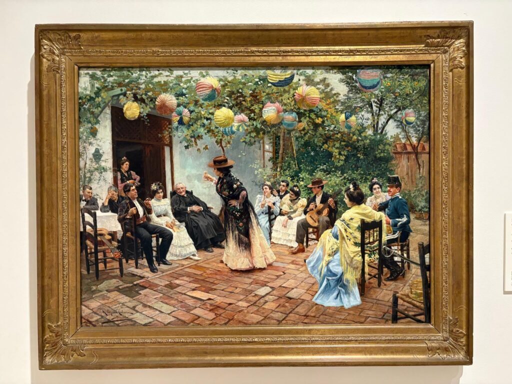 The first thing I will say is I saw an awful lot of what I would call genre paintings. The simplest definition of this term is “paintings which depict scenes of everyday life”. Genre paintings originated in what is now the Netherlands in the 17th century, featuring a lot of peasants and drinking in taverns. In the 19th century Andalusian context it still means a lot of peasants, but in sunnier climes wearing brighter clothing. The Museo Carmen Thyssen features numerous scenes of dark-haired beauties, traditional festivities and dances, and humorous or romantic meetings. The 19th century was a time when national or regional identity was developing in many parts of Europe, and the paintings give a sense of trying to capture a particular way of life at a moment of great change, particularly through industrialisation.