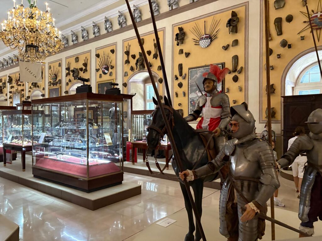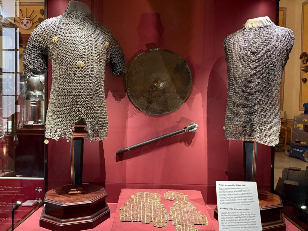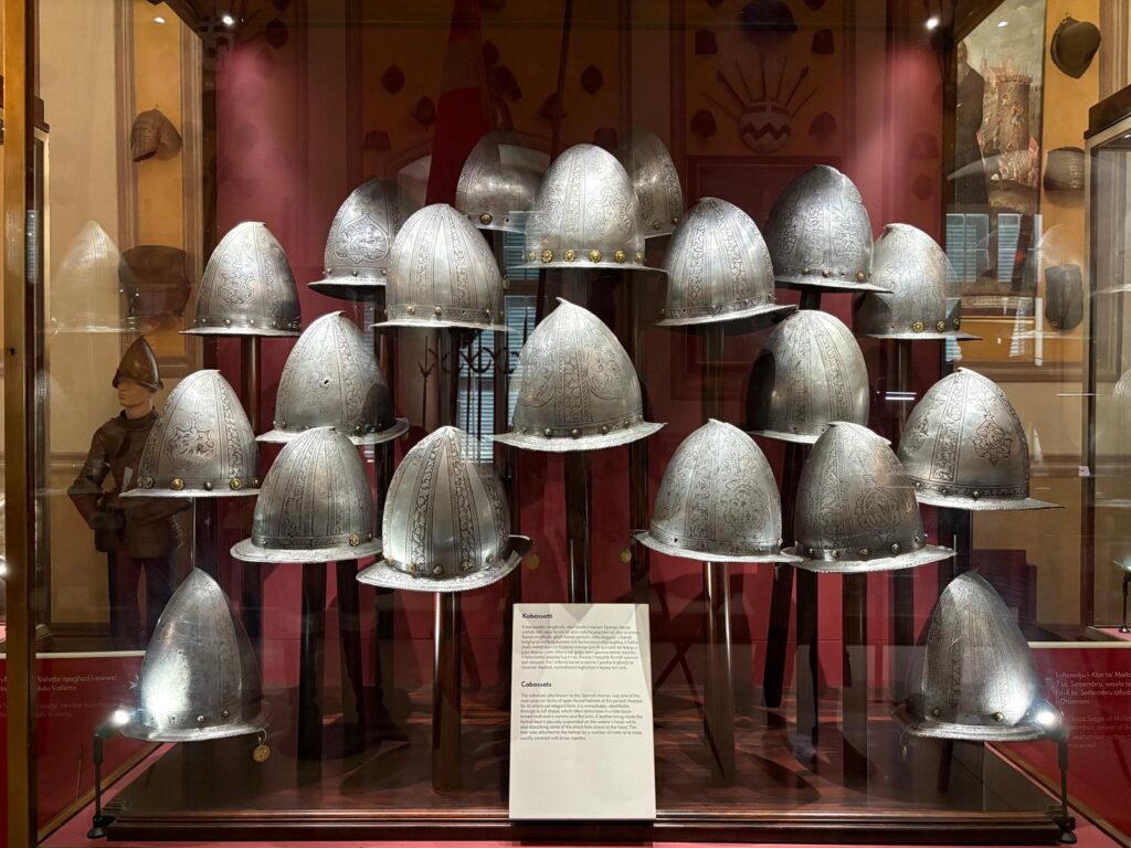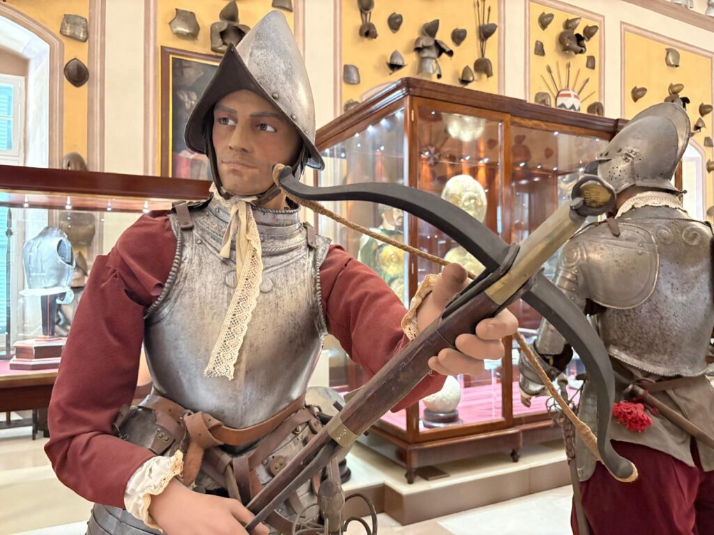 Remember how I said the Armoury was the first part opened to the public, and Malta’s first museum? There’s a reason for that. It’s highly impressive. This is one of the world’s largest collections of arms and armour. It was originally assembled for its intended purpose – the Order’s military defense and ‘defense of Christendom’. But, arrayed in patterns across the walls and in cabinets, it’s also a strangely beautiful sight. There are innumerable suits of armour. Powder flasks, swords, and firearms. If some of the weapons look positively medieval, maybe it’s because they are. There are weapons seized from the Ottoman forces during the Great Siege of Malta, and items belonging to some of the famous Knights Hospitaller through the centuries. What a proclamation of power.