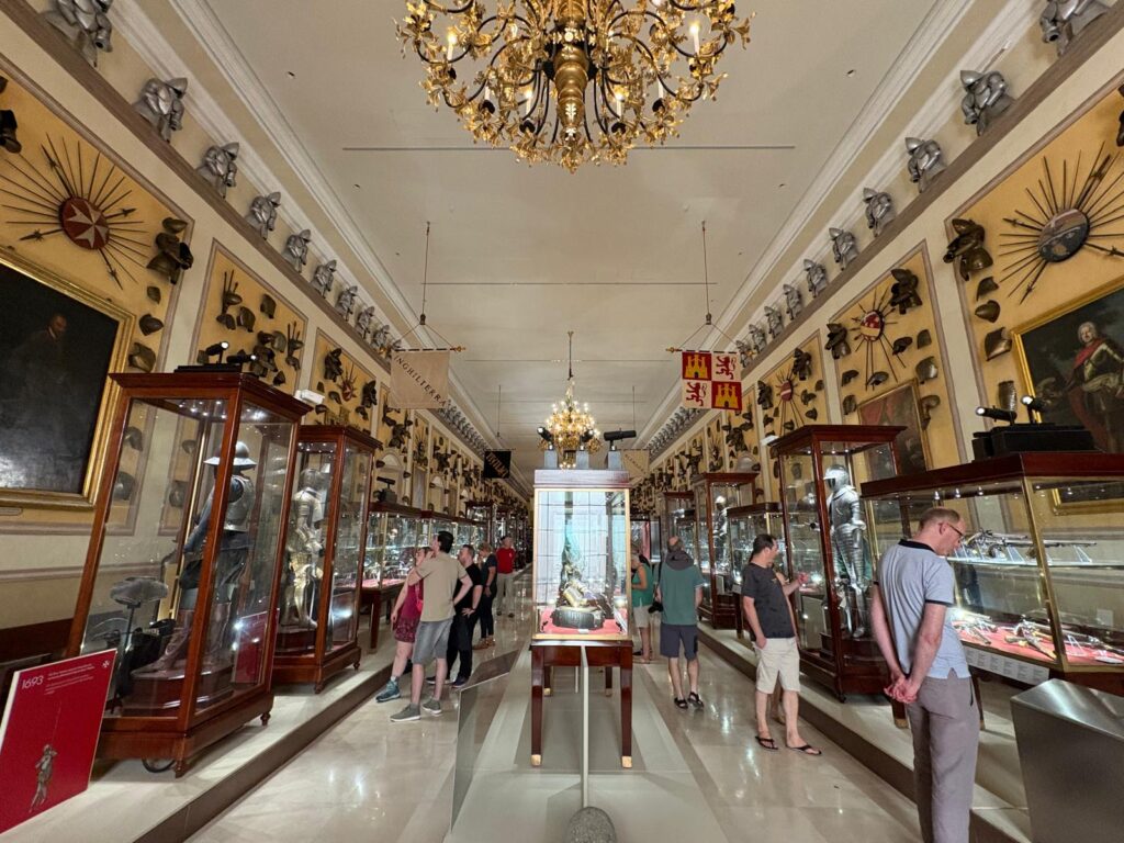 A busy place indeed! And it isn’t just Grand Masters, Governors, Parliamentarians and other officials who have been walking its corridors all this time. The Grand Master’s Palace has been open to visitors, at least in part, since 1860. That is the year that the Palace’s Armoury opened as Malta’s first public museum. We’ll come onto the Armoury in a moment – it’s a very impressive place. It actually hosted Malta’s parliament for some years, necessitating the movement of the collection to a former stables. But as far as I can tell it’s now back in its original spot.