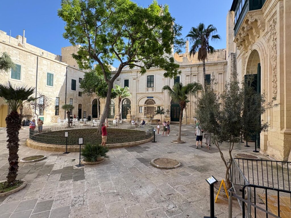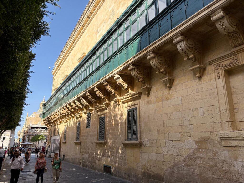 It’s often cited as the first building erected by the Knights Hospitaller in Valletta (which they purpose-built as a new capital after the 1565 Great Siege of Malta – it’s named for then-Grand Master Jean de la Valette). But it wasn’t originally the Grand Master’s Palace. A few buildings stood on the site, which now covers a city block. One – the oldest – was the house of Eustachio del Monte, nephew of the Grand Master at the time Pierre del Monte. From 1574, after Eustachio’s death, the Order began to expand it into a palace. They incorporated what was then the Auberge d’Italie, and more land, until it reached its present size.