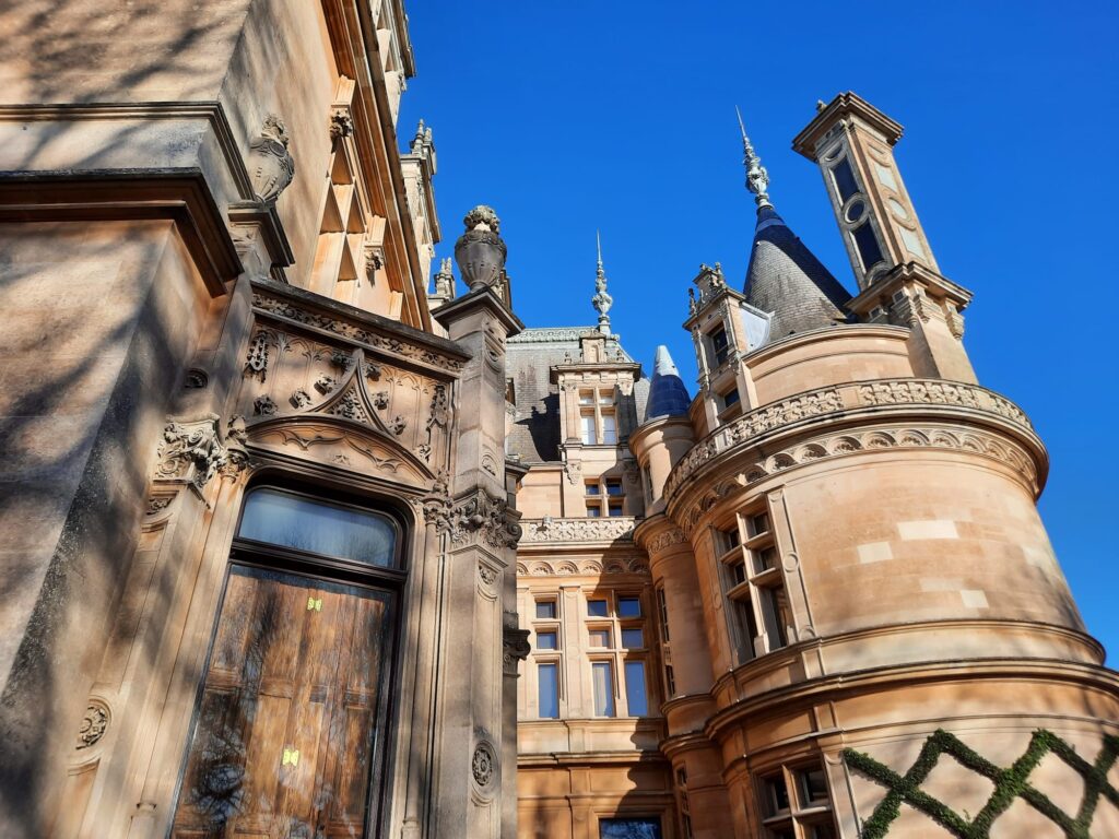 It is, as I said, in French Renaissance style, based on the chateaux of the Loire Valley. Ferdinand employed architect Gabriel-Hippolyte Destailleur who had first-hand experience of restoring several of these. Underneath the surface, however, it was deceptively modern. It first of all has a steel frame, which allowed for creative interior layouts. It also had hot and cold running water from the outset, as well as central heating and an electric bell system. Queen Victoria asked to come and stay in 1890, and was impressed by the electric lighting.