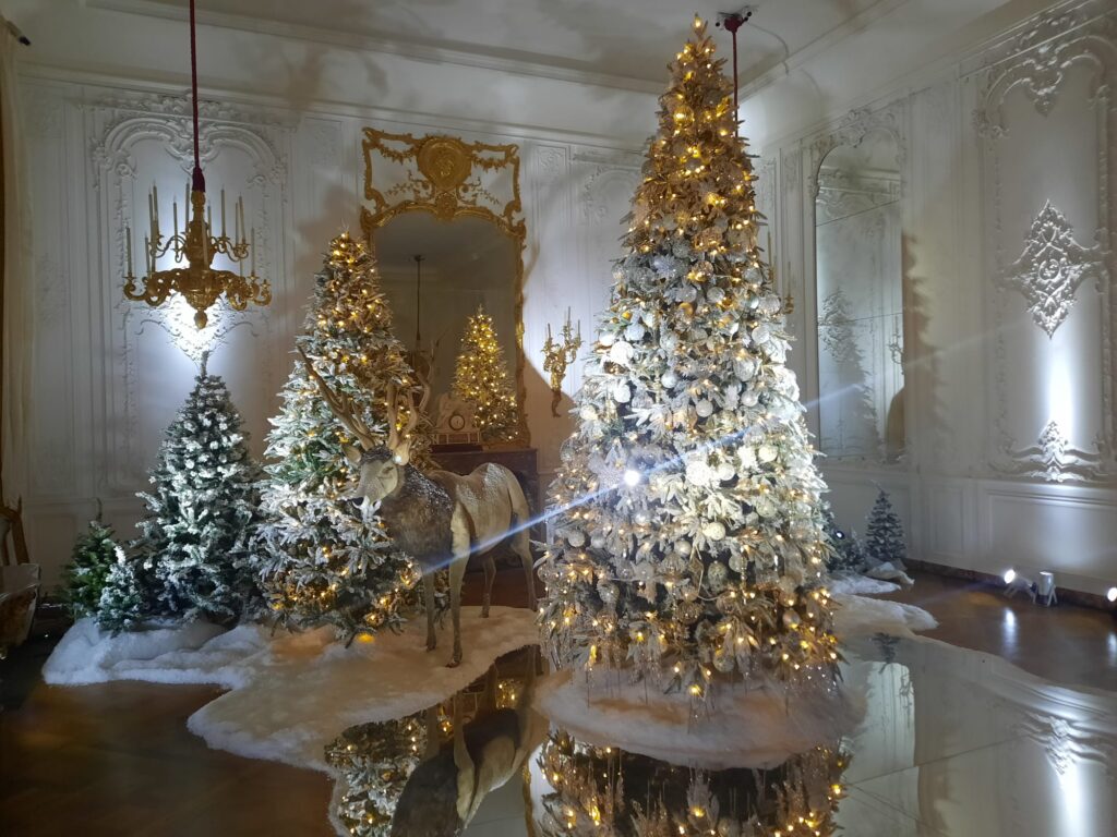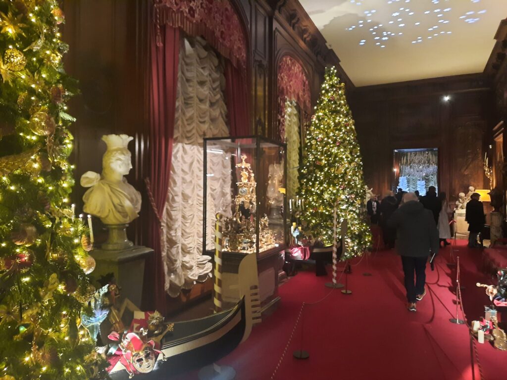 A Grand Festive Tour takes over the house, inside and out. The concept is that Baron Ferdinand de Rothschild was a great traveller, both by train and on his yacht, the Rona. Not all rooms normally open to the public are open at this time of year, in order to help manage visitor numbers and traffic flow. But the ones you can see are exquisite, each done up like a different destination Ferdinand visited, including Greece, Italy, Switzerland, Austria, France, the Netherlands, and more. Visitors can learn about different Christmas traditions at each stop along the way. For younger visitors, Ferdinand’s beloved dog Poupon features heavily, with a lost ball to spot in each room.