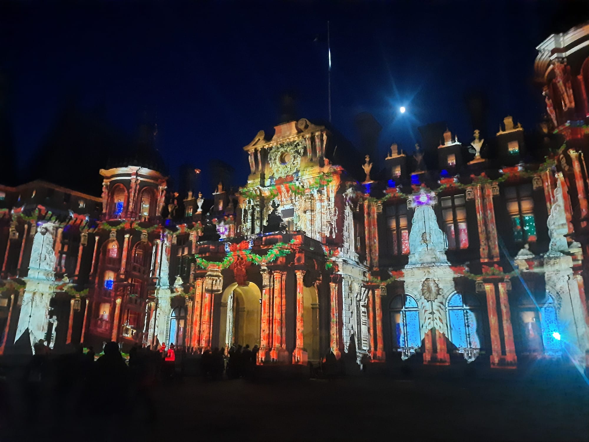 There are two parts to the illuminations, which are also new for 2025. The first are the projections onto the house itself, with lights and lasers over the lawn in front. These extend the Grand Festive Tour theme, with trains whisking audiences to different stops they can find inside. They’re again very well done, and look good up close where you can see the detail, or from a distance where you can take in the overall effect.