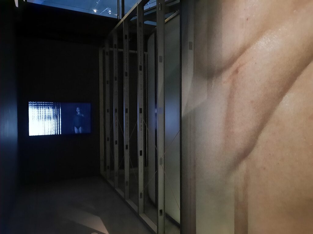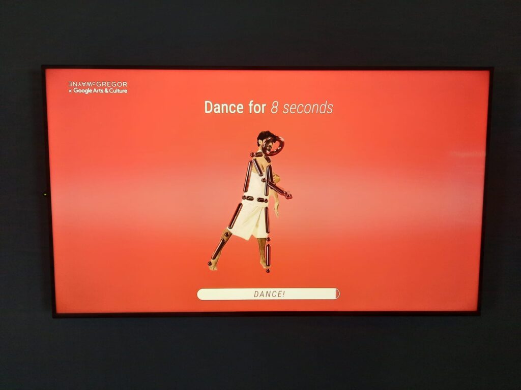 Other pieces are delightfully simple. My favourite was Future Self (2012), a collaboration between McGregor, Random International, and Max Richter. An interactive sculpture turns your shadow into rippling LED light. It doesn’t require instructions, and is inclusive of everyone from professional dancers (who we see interacting with it in a recording) to, well, everyone. There’s just the surprise and pleasure of seeing your body echoed back at you in a different form. It feels very physical and immediate in an exhibition full of tech.