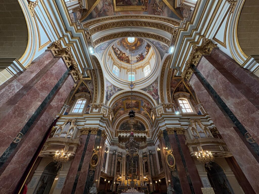 - St Paul’s Cathedral and Mdina Cathedral Museum: as Mdina remained, the centre of Maltese religious authority, this isn’t a bad place to start. A lot of churches and cathedrals in Malta have ticketed entry, including this one. So you may as well get a ticket for both the cathedral and its museum, which has an interesting collection and gives a good overview. Like St John’s Co-Cathedral in Valletta, St Paul’s Cathedral has an astonishing interior, with colourful inlaid tombs at floor level.