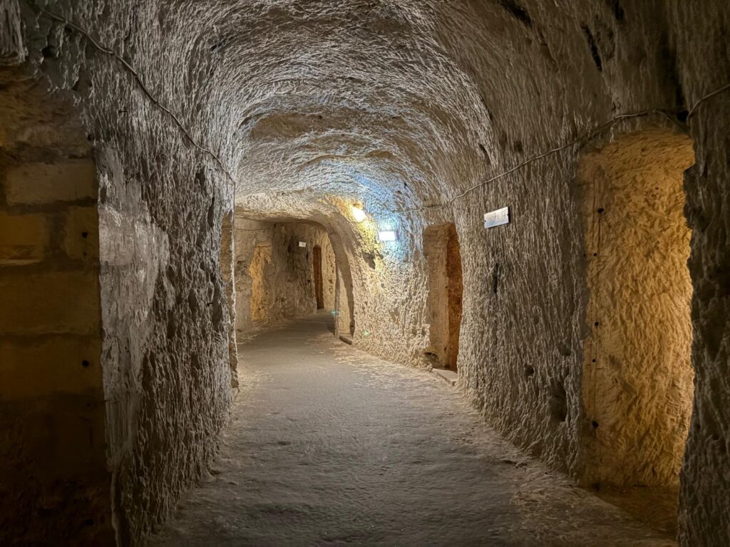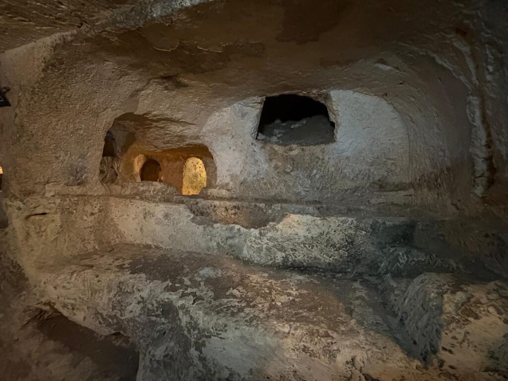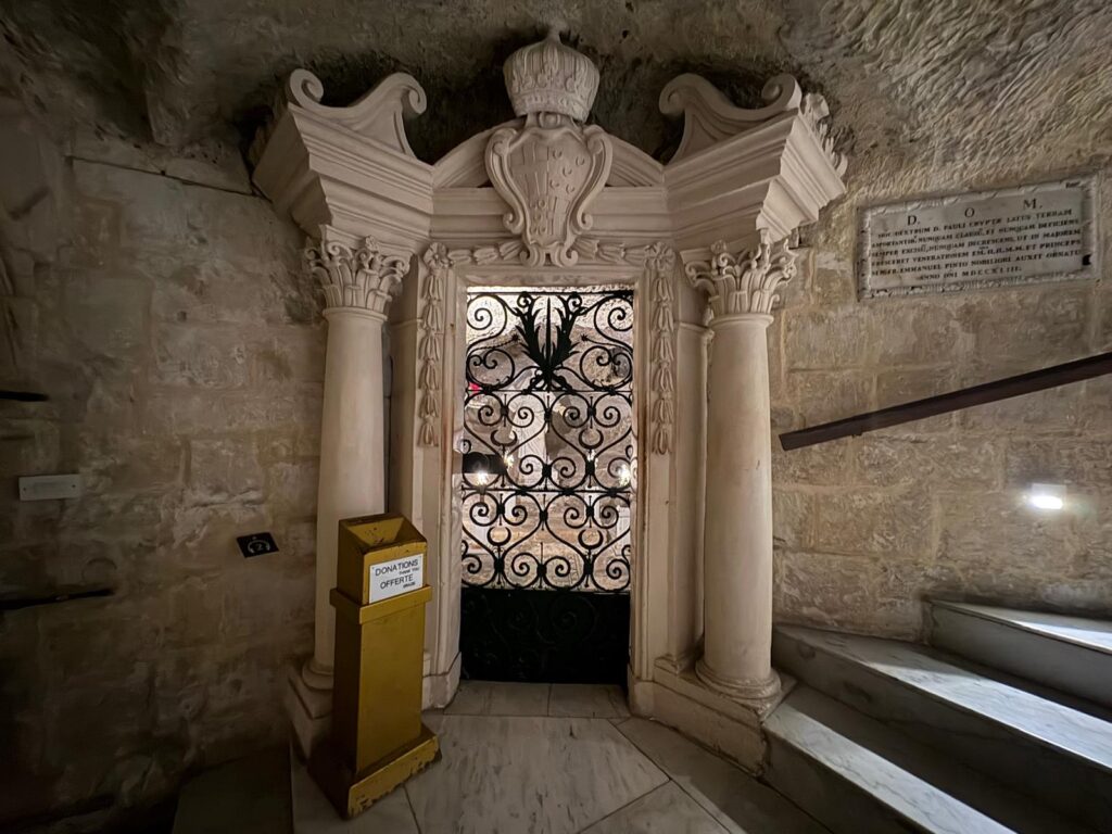 - St Paul’s Catacombs: associated with early Christians, but actually older, dating to the 4th-3rd century BCE. At the time, burials took place outside the city. They remained in use until as late as the 8th century CE, and a part of the catacombs was reused as a shrine during the re-Christianisation of Malta in the 13th century. The name comes from a myth that these catacombs once connected to St Paul’s Grotto: see the Wignacourt Museum below.
