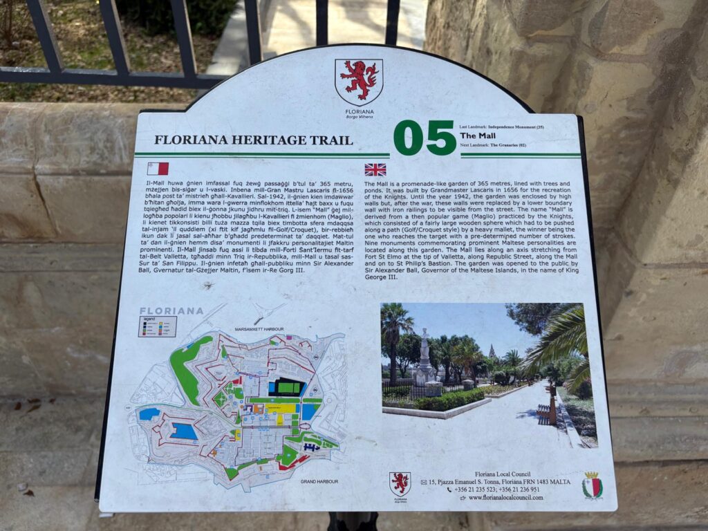 My first experience of Floriana was as a handy place to go running in the mornings. I’d learned my lesson doing a loop around Valletta, which is fine until you come to a big incline to get back to the city from the ferry port. If you’re going to go to the effort of exercising on holiday, the least you can do is find an easy route for yourself. And Floriana looked a great deal flatter! The upshot of running around Floriana was that I started to notice interesting historic spots. Many had plaques in front of them, part of a walking tour, but there’s only so much you can read as you jog past. So with a morning spare, I decided to go and have a proper look.