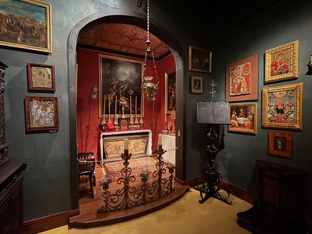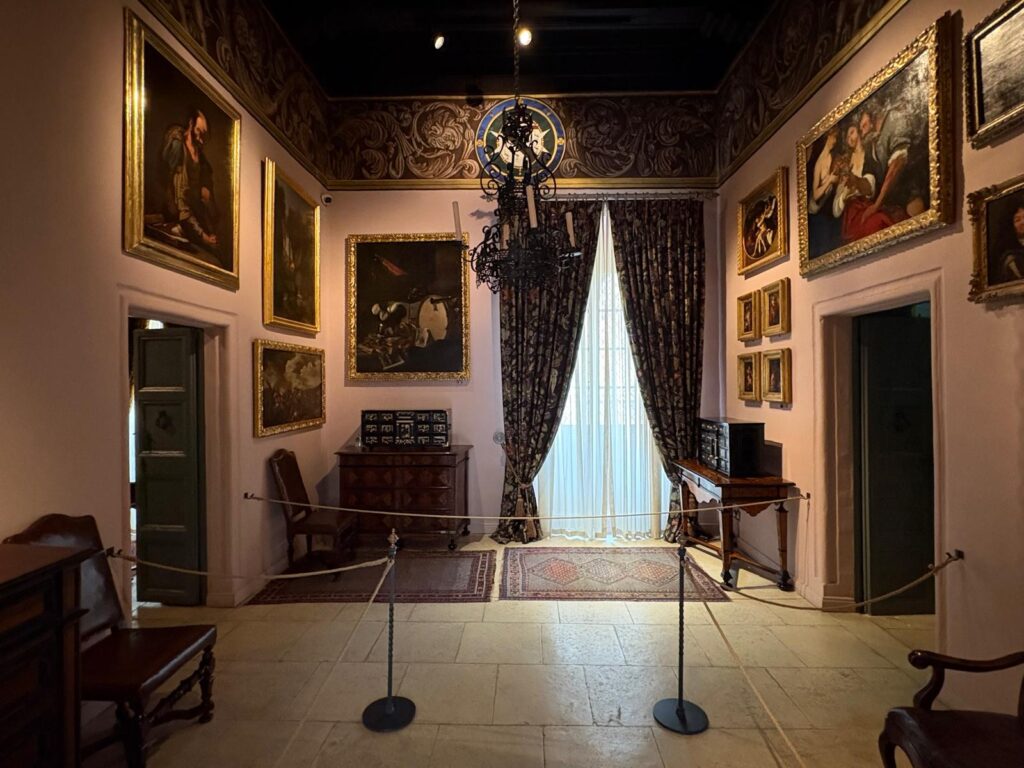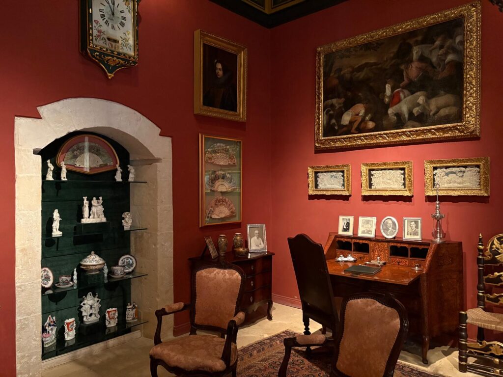 From images I’ve seen on the Palazzo Falson’s website, the historic house museum today is rather different than its appearance during Gollcher’s time. The collection is of course the same, but a contemporary presentation has it looking its best to modern eyes. Gone is the mid-century floral upholstery. Painted walls offset the art and antiques, with the appearance of natural or historic pigments.