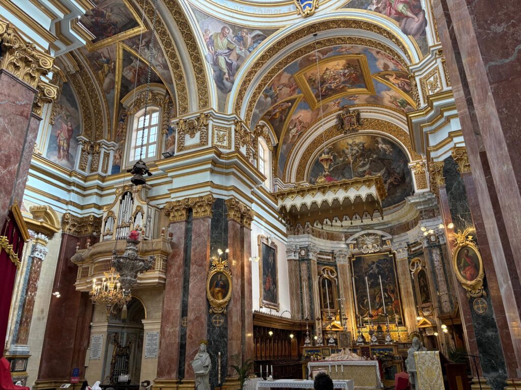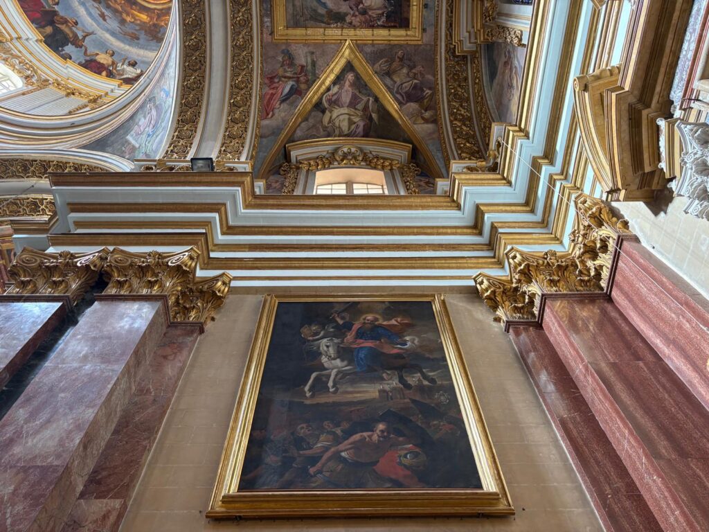 The first cathedral here was dedicated to the Virgin Mary. This cathedral fell into disrepair when the city was largely abandoned, and was used as a mosque during the Arab period. When Christianity was reestablished in the islands the cathedral was too, in Gothic and Romanesque styles. In 1679 Bishop Miguel Jerónimo de Molina appointed architect Lorenzo Gafà to replace the medieval choir with a fashionable Baroque one. A few years later Gafà was able to do much more, after an earthquake severely damaged the cathedral in 1693. The surviving choir and sacristy became part of a new cathedral, Gafà’s masterpiece. Another earthquake in 1856 did some damage to frescoes in the cathedral’s dome.