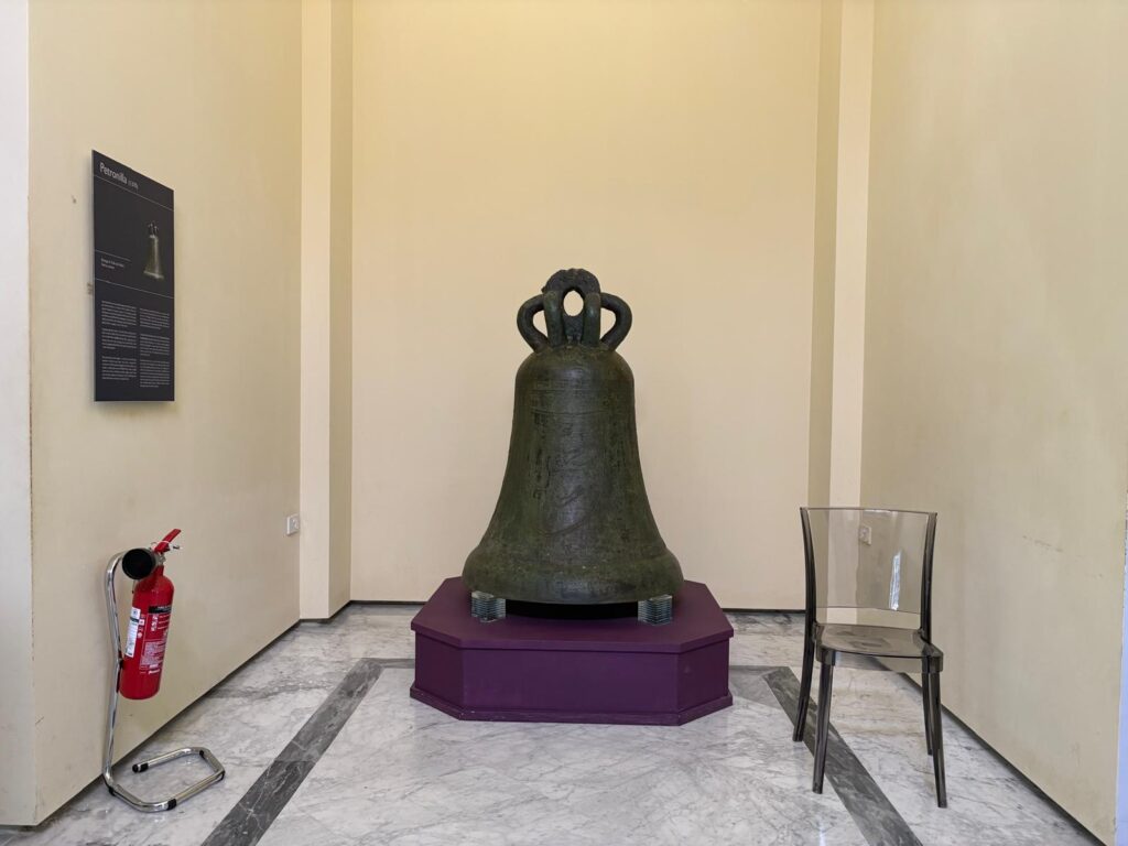 I particularly liked seeing a couple of items directly connected to the cathedral we’d just visited. For starters, there is a section of the beautiful 15th century choir stall, restored around 2008. The decoration, in inlaid wood, is exquisite. Malta’s oldest bell is also here. Dating to 1370, it was the work of two Venetian brothers. It hung in the belfry of the old cathedral until 1645, when it was christened and consecrated Petronilla (after St Peter). It survived both major earthquakes, and continued to hang in the belfry of the new cathedral until 2008. At that point its historic importance and fragility outweighed its fulfilment of its original function, and it came inside the museum. That gave me the opportunity to examine its charming effigy of St Paul up close.
